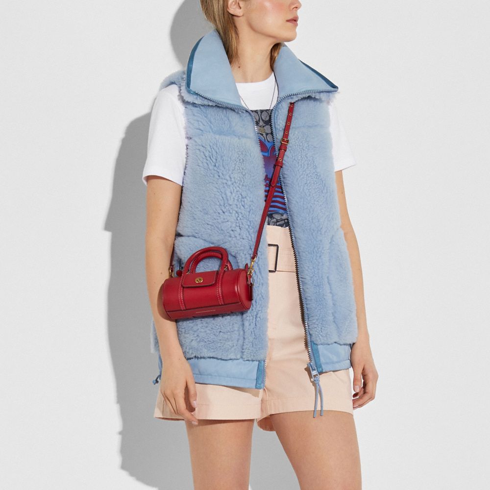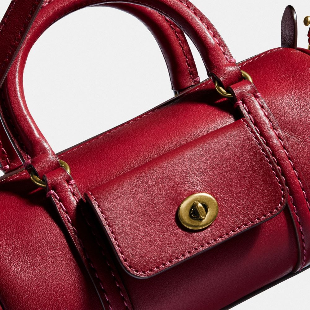 Glovetanned leather| One credit card slot| Zip-top closure, leather lining| Handles with 2 1/4" drop| Outside turnlock pocket| Detachable strap with 21 1/2" drop for shoulder or crossbody wear| 6 3/4" (L) x 3 1/2" (H) x 3 1/2" (W)| The Coach Originals