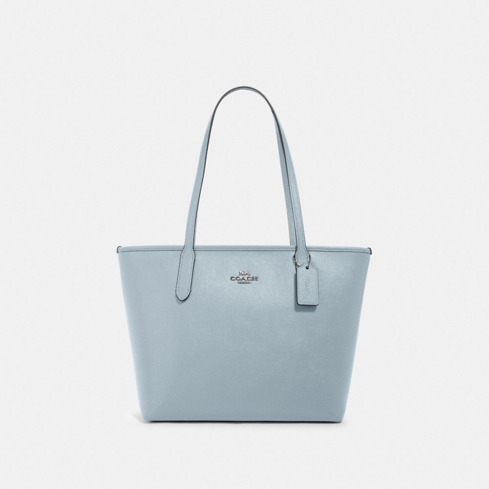 Crossgrain leather| Cell phone and multifunction pockets| Zip-top closure, fabric lining| Handles with 8 3/4" drop| 10 1/2" (L) x 10 1/4" (H) x 4 1/4" (W)