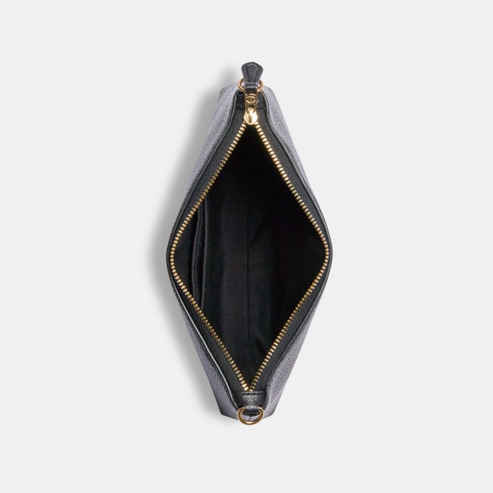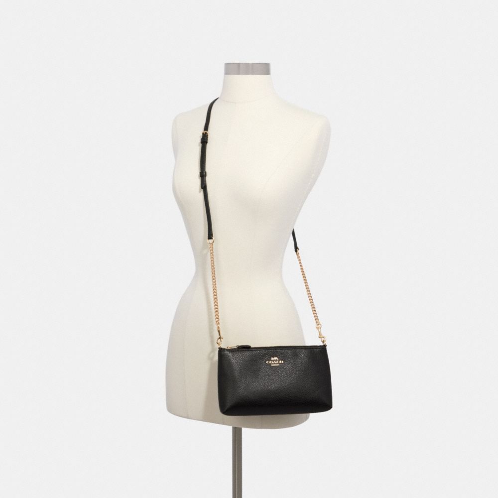 Refined pebble leather| Two credit card slots| Zip-top closure, fabric lining| Detachable strap with 21 1/4" drop for shoulder or crossbody wear| 8 3/4" (L) x 5" (H)