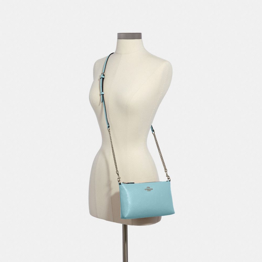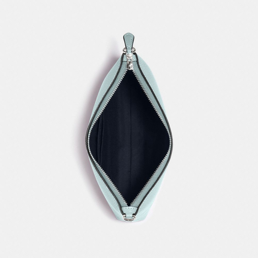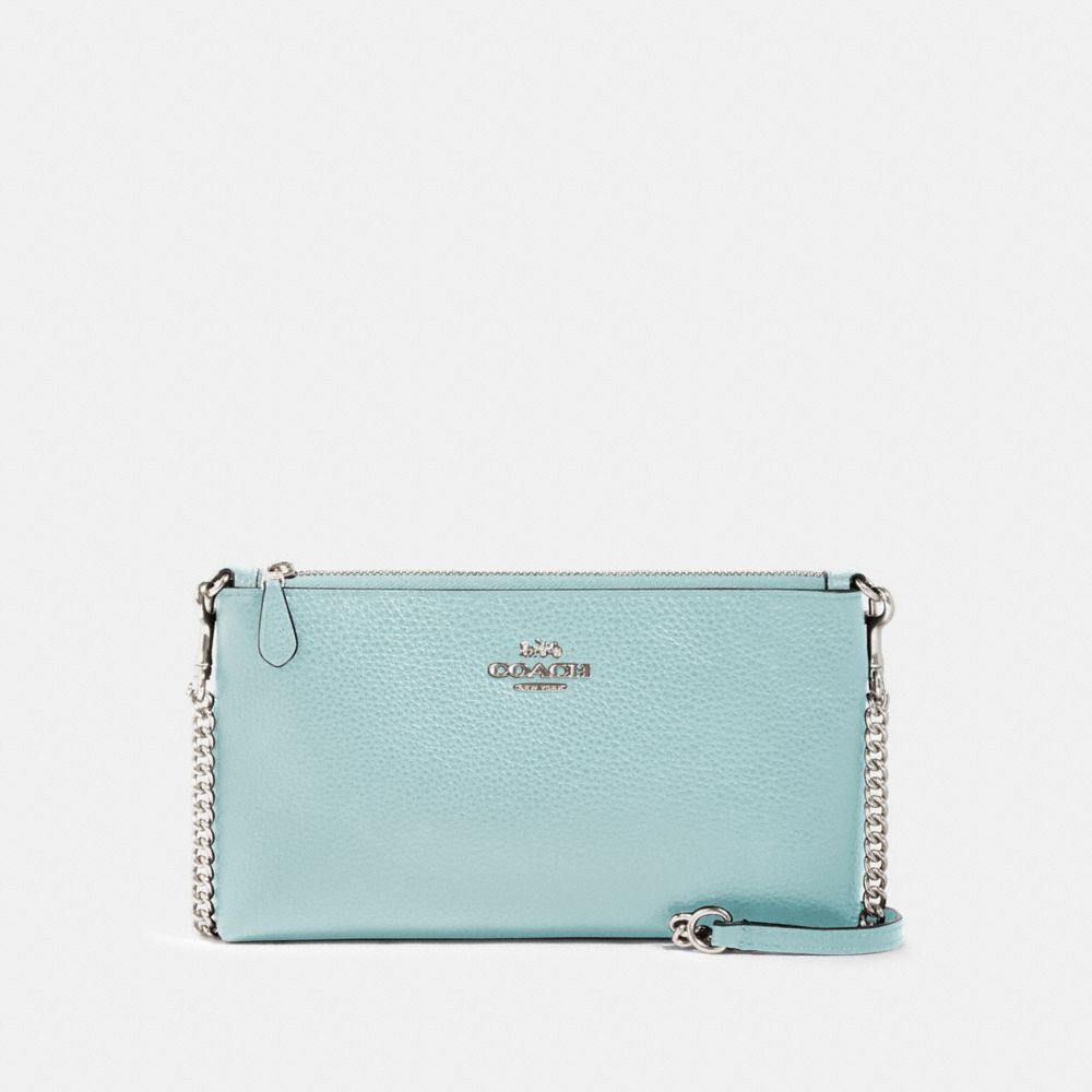 Refined pebble leather| Two credit card slots| Zip-top closure, fabric lining| Detachable strap with 21 1/4" drop for shoulder or crossbody wear| 8 3/4" (L) x 5" (H)