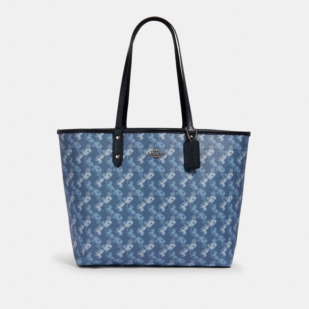 REVERSIBLE CITY TOTE WITH HORSE AND CARRIAGE PRINT