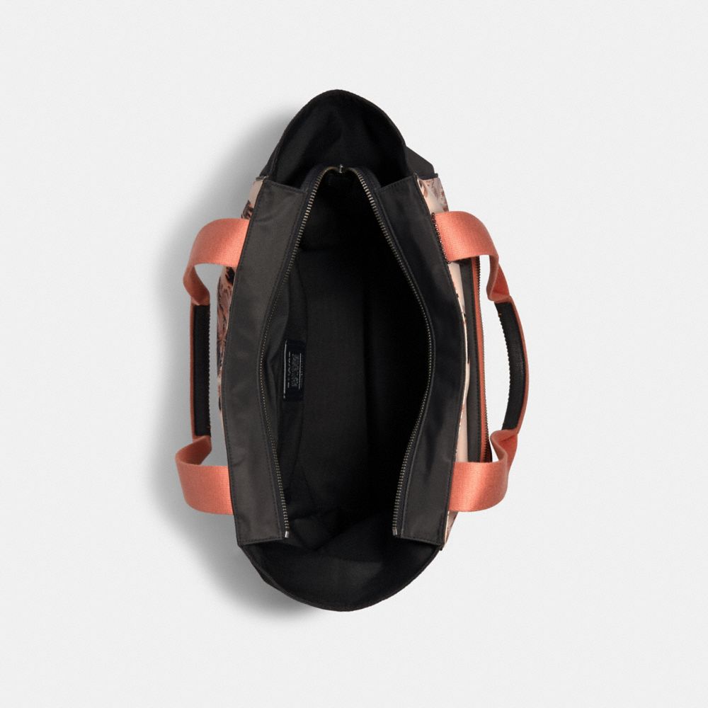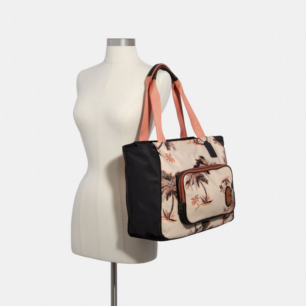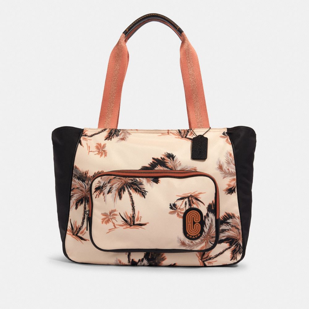 Nylon and refined pebble leather| Inside zip pocket| Zip-top closure, fabric lining| Handles with 10" drop| Outside zip pocket| 15 1/2" (L) x 12 1/2" (H) x 5 3/4" (W)