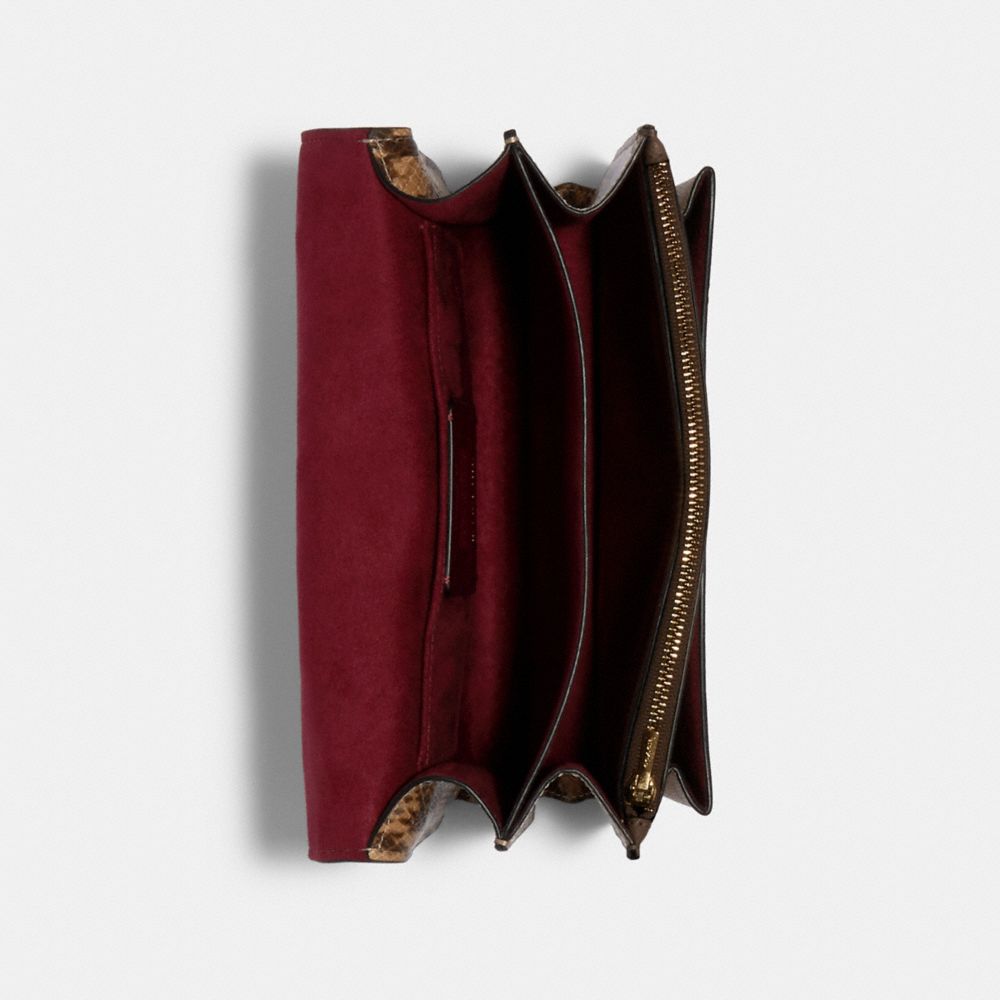 Crossgrain leather, smooth leather and snake-embossed leather| Inside zip and multifunction pockets| Snap closure, fabric lining| Strap with 22" drop doubles up for three ways to wear: short or long on the shoulder or crossbody style| 8 1/2" (L) x 6 1/4" (H) x 2 3/4" (W)