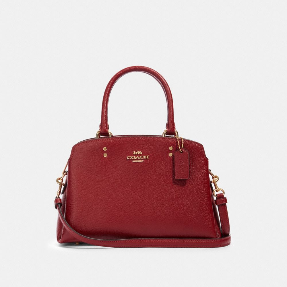 Crossgrain leather| Center zip compartment| Snap closure, fabric lining| Handles with 4 1/4" drop| Outside open pocket| Detachable strap with 21 1/2" drop for shoulder or crossbody wear| 10 1/4" (L) x 6 3/4" (H) x 4 1/4" (W)