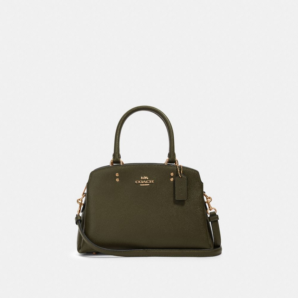 Crossgrain leather| Center zip compartment| Snap closure, fabric lining| Handles with 4 1/4" drop| Outside open pocket| Detachable strap with 21 1/2" drop for shoulder or crossbody wear| 10 1/4" (L) x 6 3/4" (H) x 4 1/4" (W)