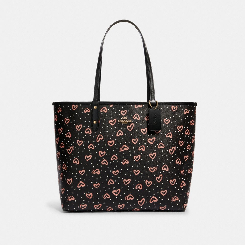 REVERSIBLE CITY TOTE WITH CRAYON HEARTS PRINT