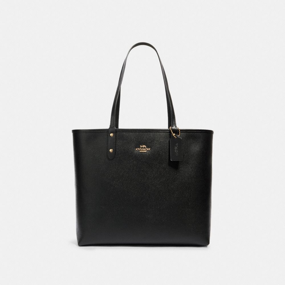 Printed coated canvas and smooth leather| Reversible| Handles with 9 1/2" drop| 13" (L) x 11 1/2" (H) x 6 1/4" (W)
