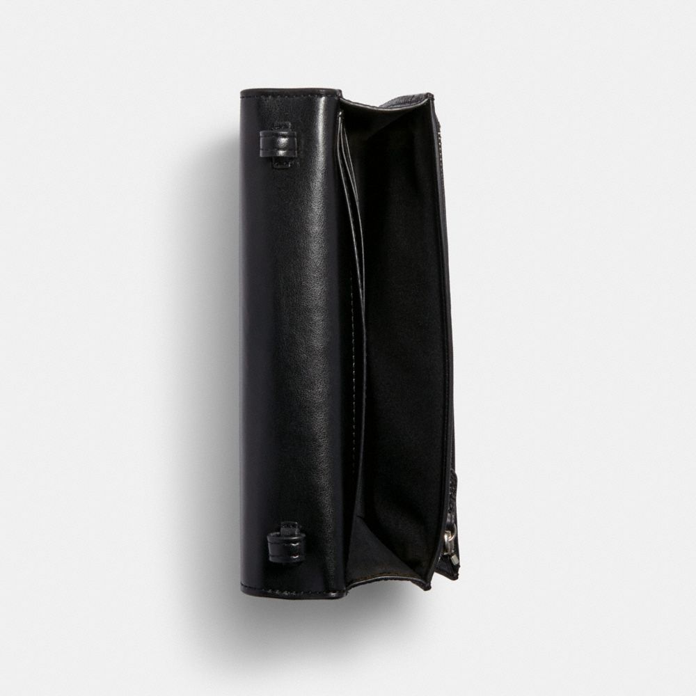Refined pebble leather| Eight credit card slots| Full-length bill compartment| Inside zip pocket| Snap closure| Outside slip pocket| Detachable strap with 23" drop for shoulder or crossbody wear| 8" (L) x 4 3/4" (H) x 1 1/2" (W)| Disney x Coach| ©Disney