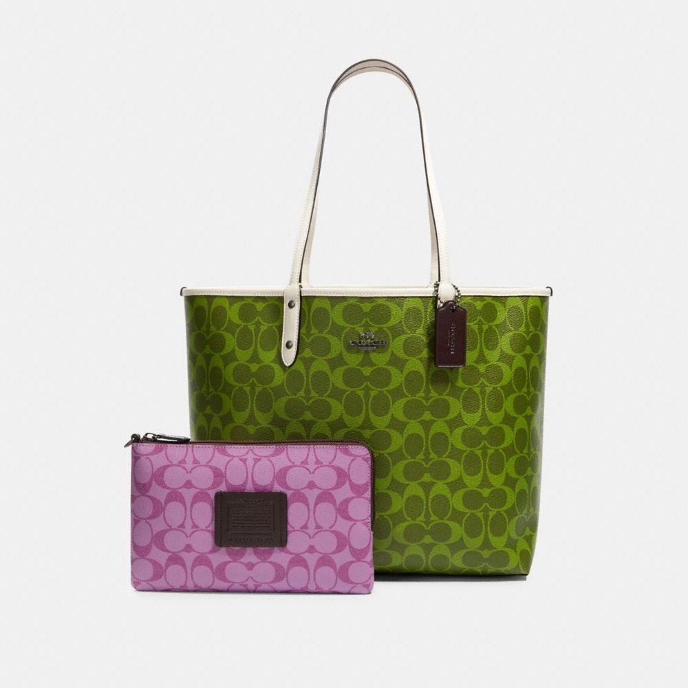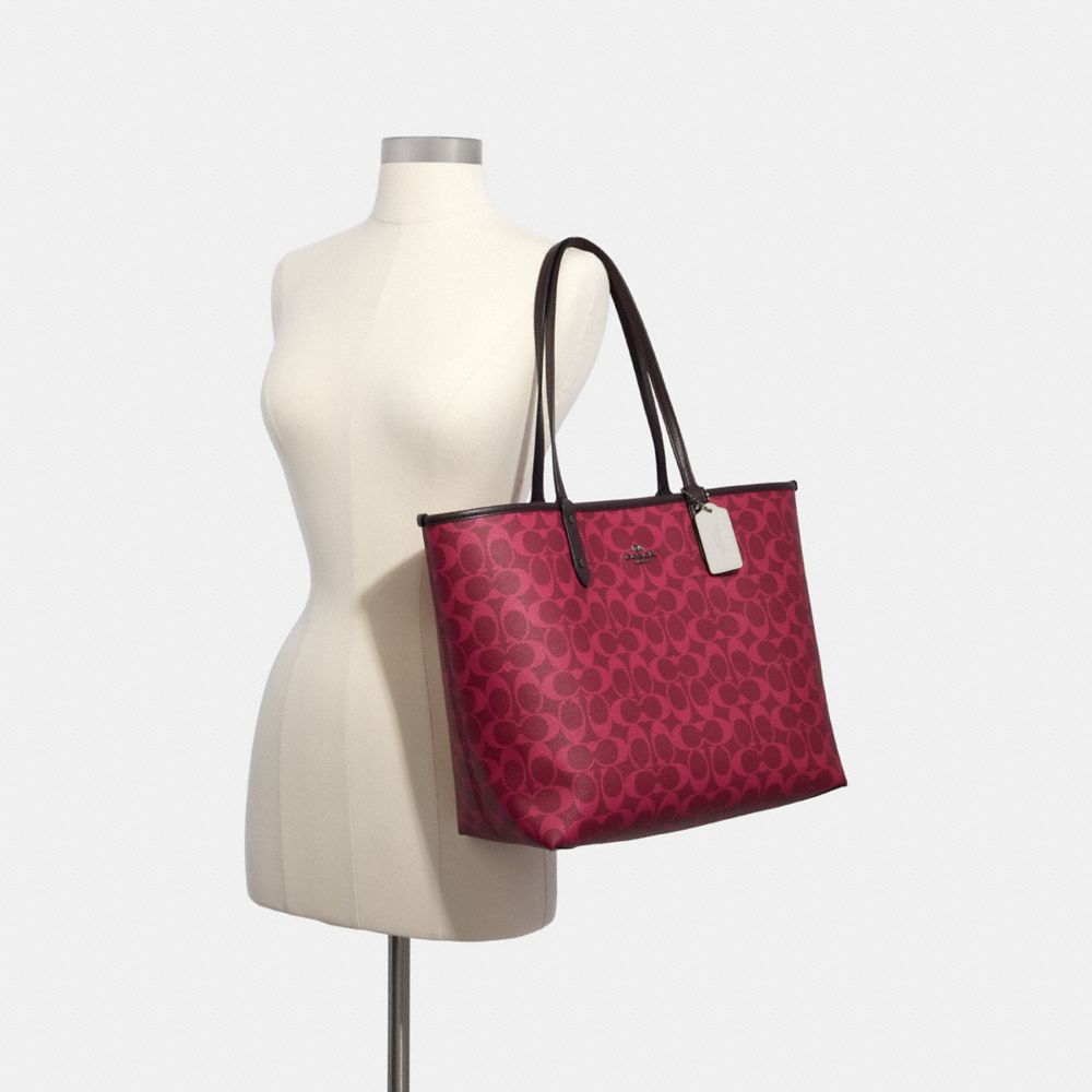 REVERSIBLE CITY TOTE IN BLOCKED SIGNATURE CANVAS