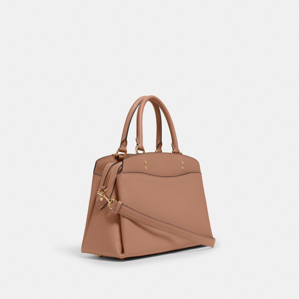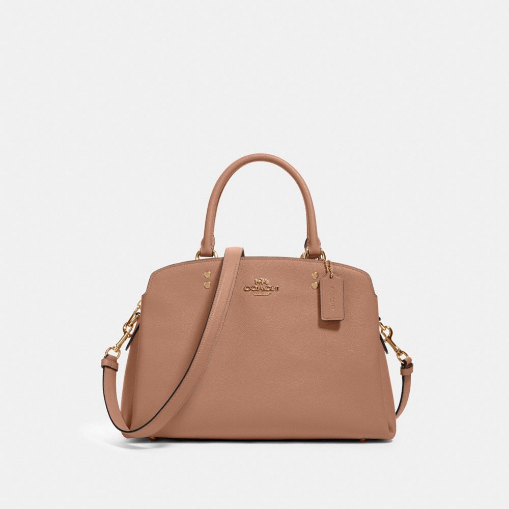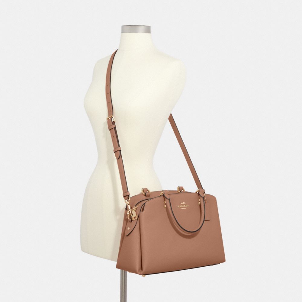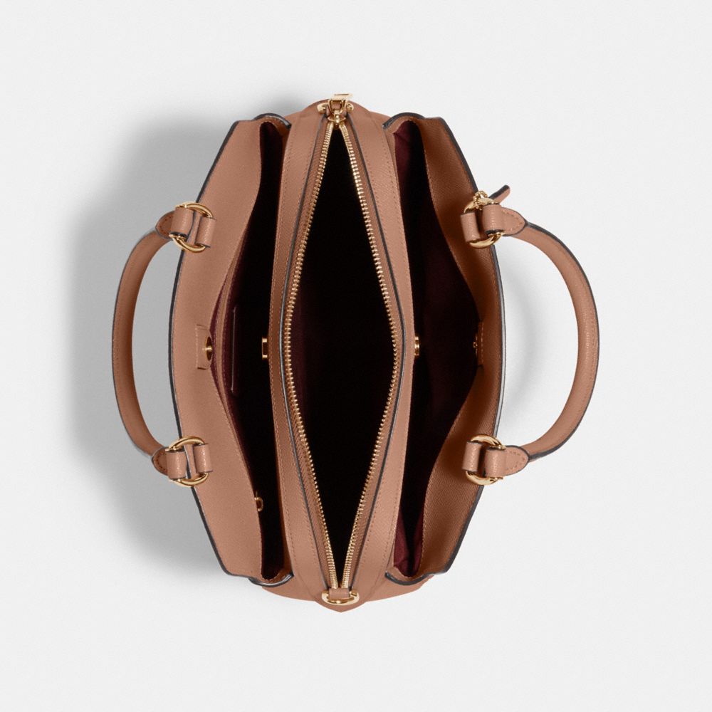 Crossgrain leather| Inside zip and multifunction pockets| Center zip compartment| Snap closure, fabric lining| Handles with 4 3/4" drop| Outside open pocket| Detachable strap with 20" drop for shoulder or crossbody wear| 12 3/4" (L) x 8 3/4" (H) x 5 1/4" (W)Style No. 91493