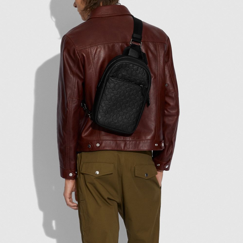 Signature soft polished pebble leather and soft polished pebble leather| Inside multifunction pocket| Zip closure, fabric lining| Top handle with 2 1/4" drop| Outside zip and snap pockets| Adjustable shoulder strap for crossbody wear| 7" (L) x 13" (H) x 2 3/4" (W)Style No. C1073