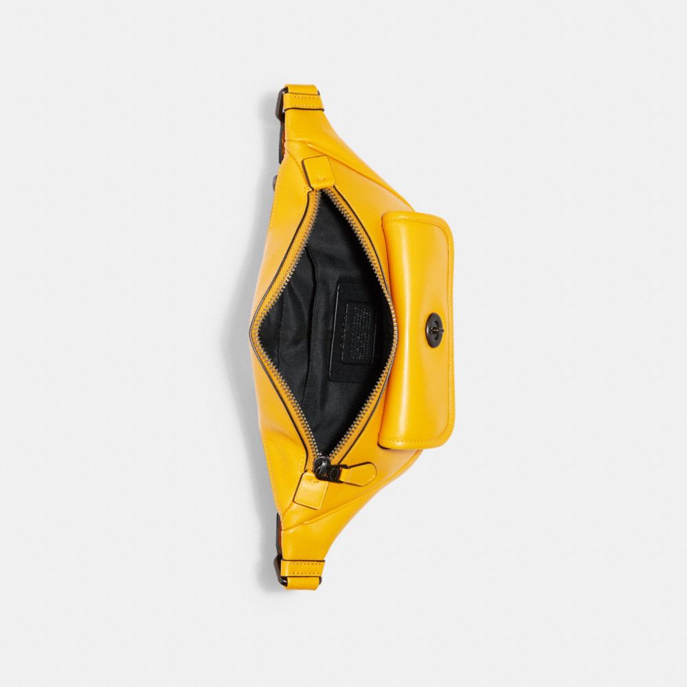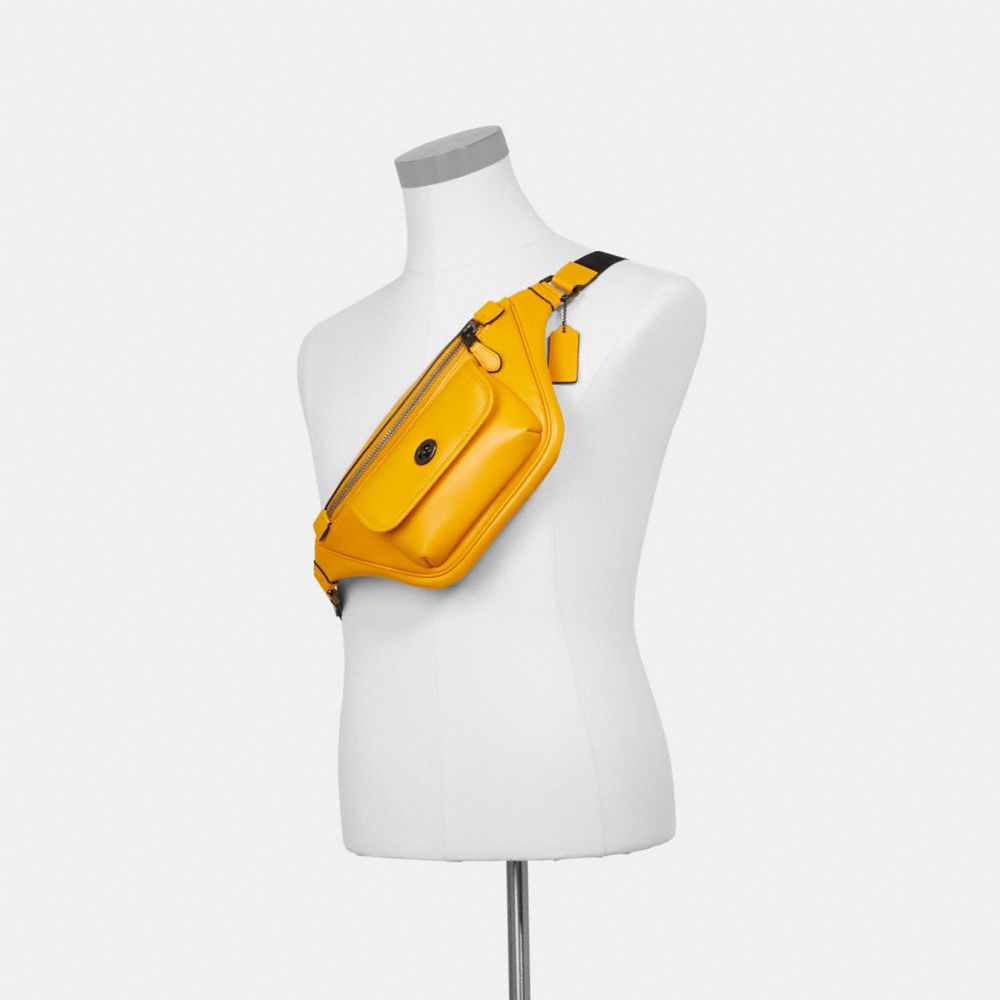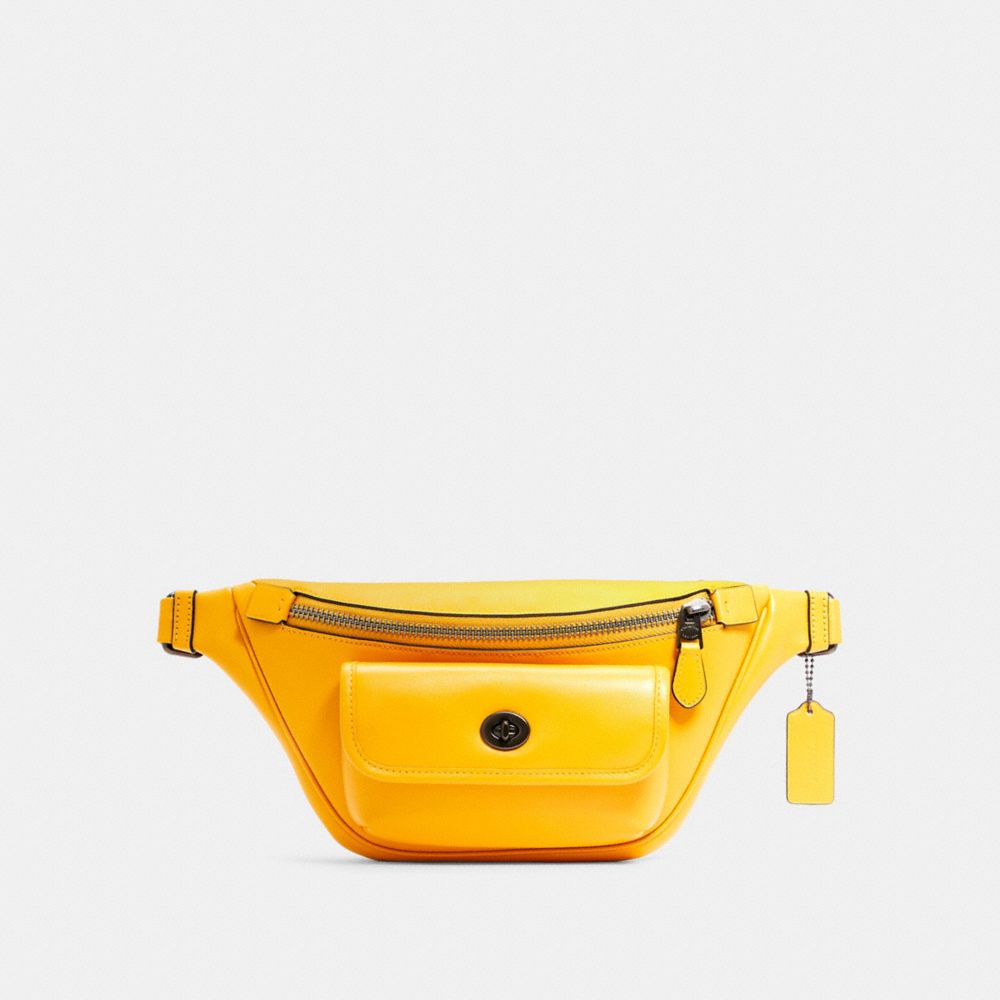 Refined calf leather| Inside multifunction pocket| Zip closure, fabric lining| Outside zip and turnlock pockets| Adjustable strap for wear at waist| 13 1/4" (L) x 6 1/4" (H) x 3 1/4" (W)