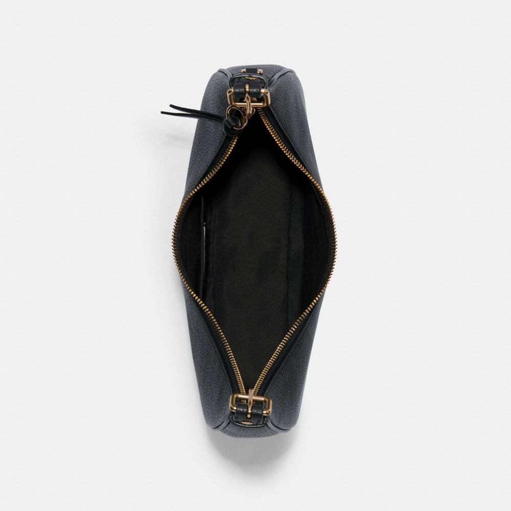 Refined pebble leather| Inside multifunction pocket| Zip-top closure, fabric lining| Adjustable handle with 9" drop| 11" (L) x 10 1/2" (H) x 2 3/4" (W)