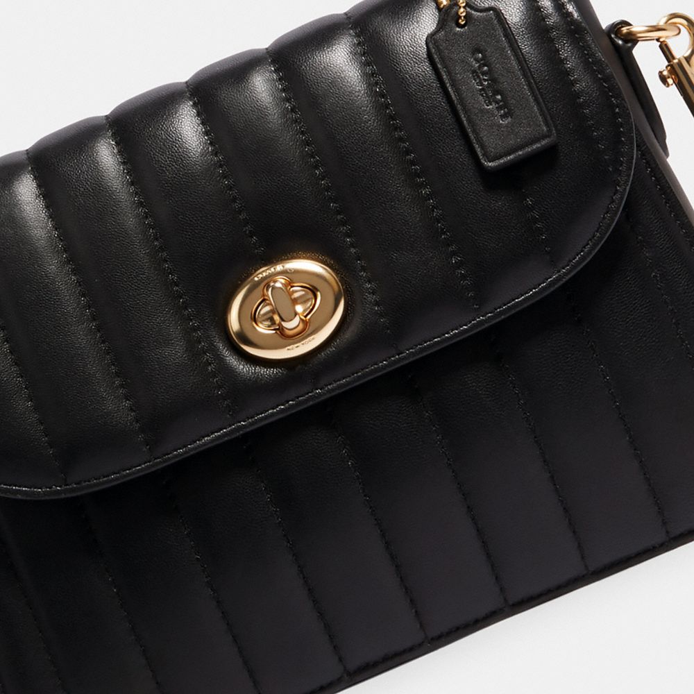 Nappa leather and smooth leather| Inside zip and multifunction pockets| Turnlock closure, fabric lining| Top handle with 3 1/2" drop| Outside open pocket| Detachable strap with 22" drop for shoulder or crossbody wear| 9 1/2" (L) x 7" (H) x 2 3/4" (W)