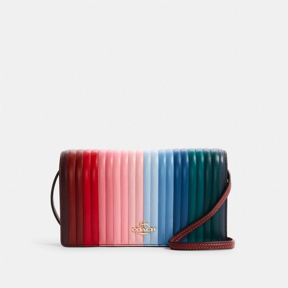 ANNA FOLDOVER CROSSBODY CLUTCH WITH RAINBOW LINEAR QUILTING