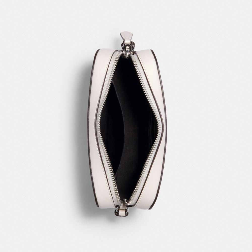 Printed coated canvas and smooth leather| Two credit card slots| Inside multifunction pocket| Zip closure, fabric lining| Outside open pocket| Adjustable strap with 23" drop for shoulder or crossbody wear| 7 1/4" (L) x 5 1/4" (H) x 2" (H)