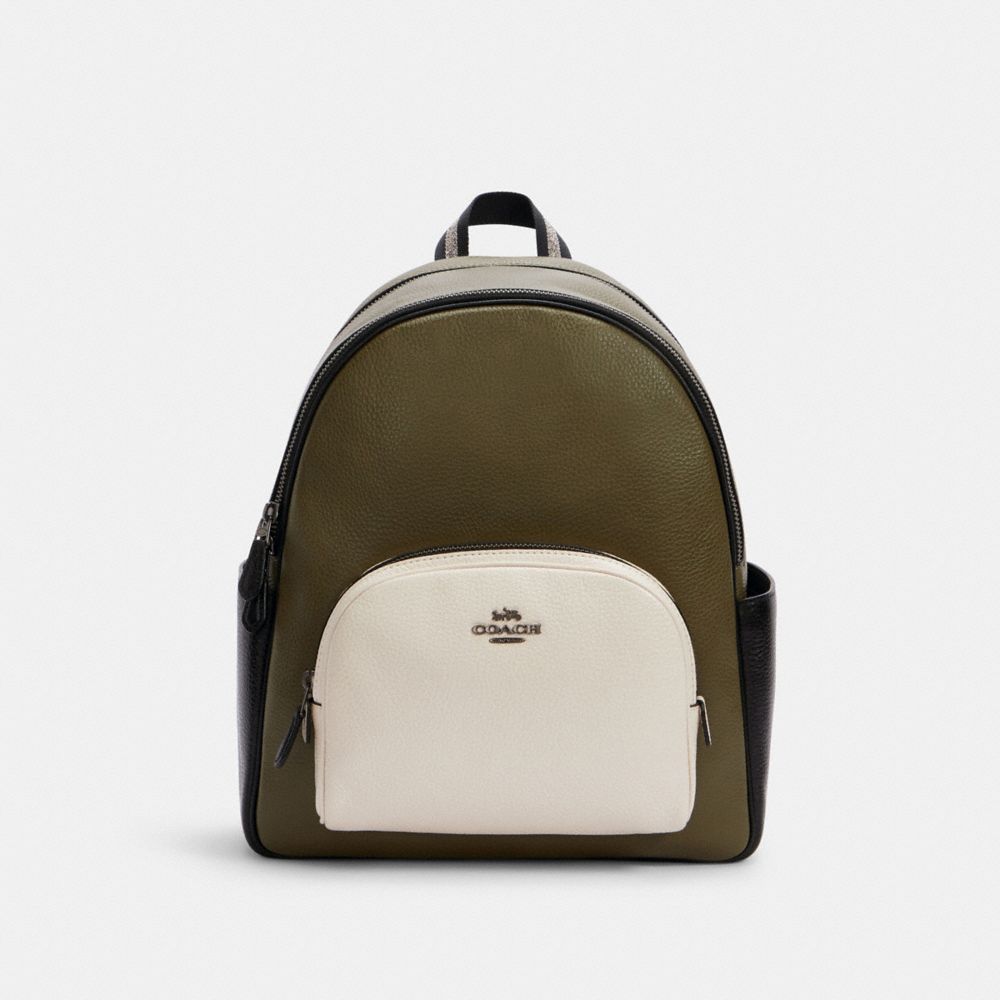 Refined pebble leather| Inside zip and slip pockets| Zip closure, fabric lining| Handle with 2 1/4" drop| Outside zip pocket| Adjustable shoulder straps| 10 1/2" (L) x 14 1/4" (H) x 5" (W)