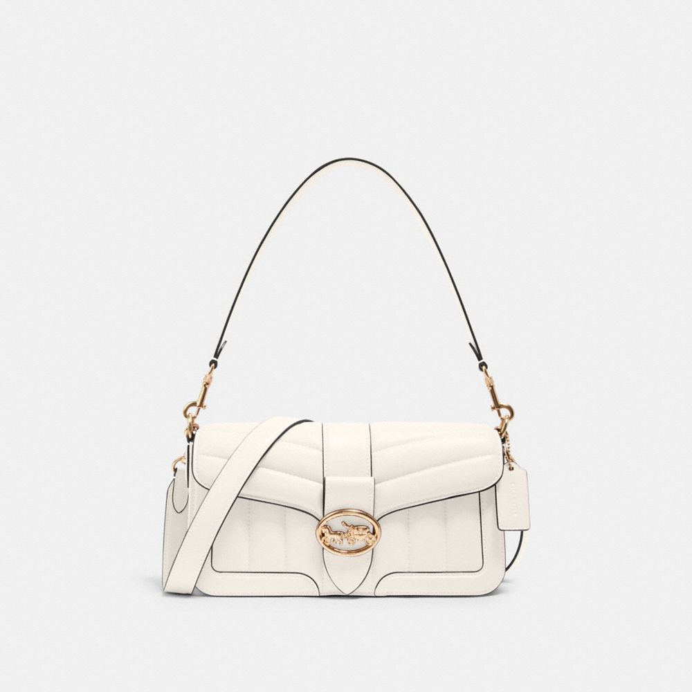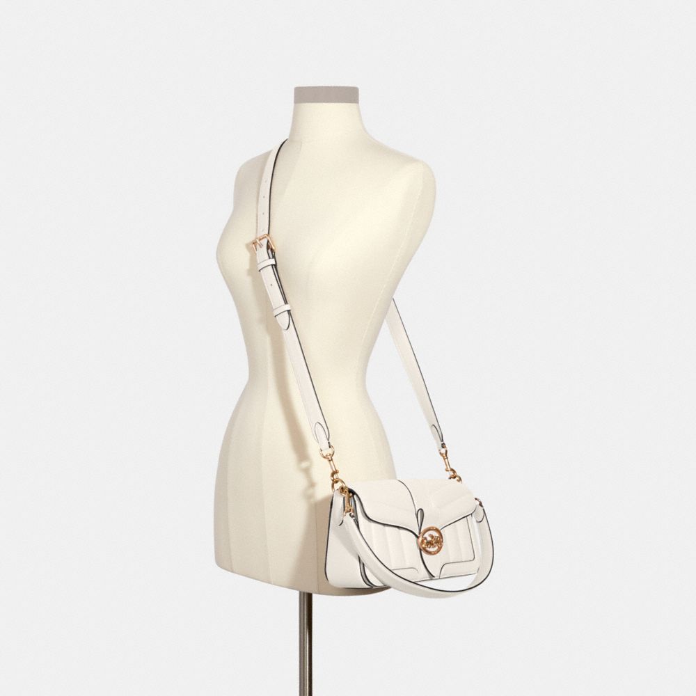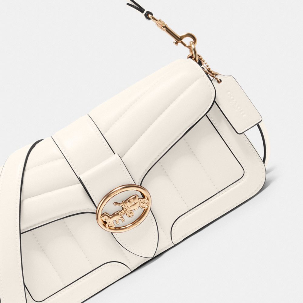 Nappa leather and smooth leather| Inside zip pocket| Snap closure, fabric lining| Detachable handle with 9" drop| Outside open pocket| Detachable strap with 22" drop for shoulder or crossbody wear| 10 3/4" (L) x 5 1/2" (H) x 2 3/4" (W)