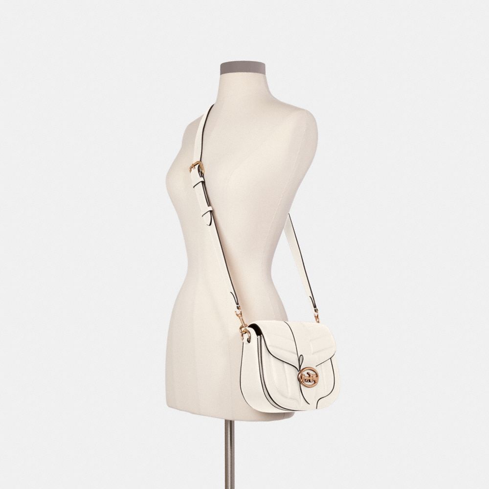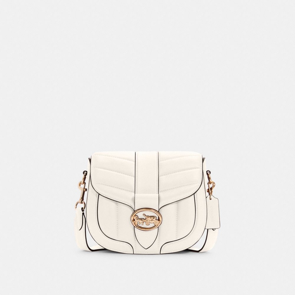 Nappa leather and smooth leather| Inside multifunction pockets| Snap closure, fabric lining| Outside open pocket| Detachable strap with 20 3/4" drop for shoulder or crossbody wear| 8 1/4" (L) x 6 3/4" (H) x 2 3/4" (W)