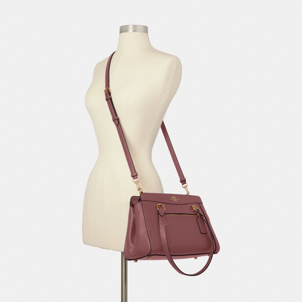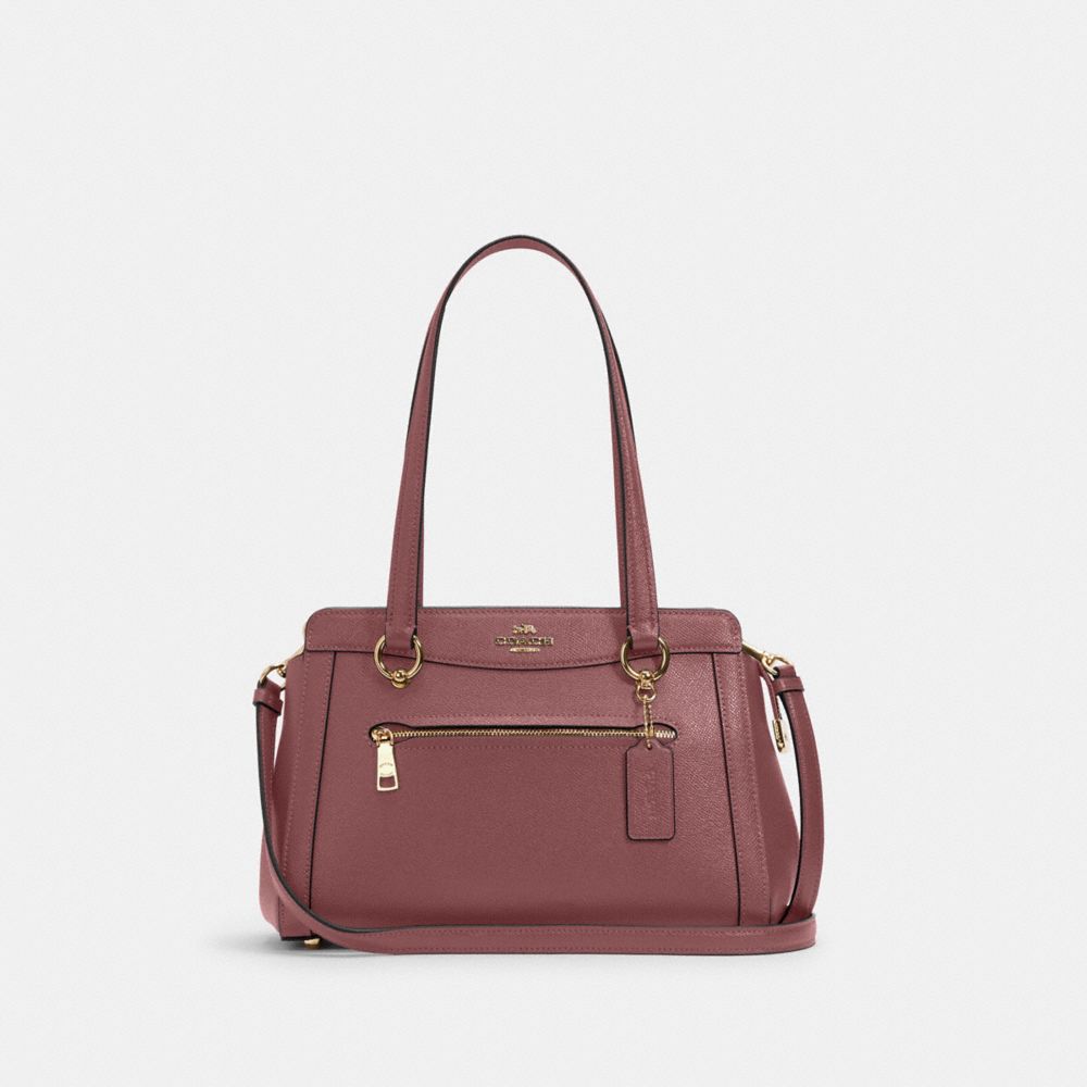 Crossgrain leather| Inside zip and multifunction pockets| Zip-top closure, fabric lining| Handles with 8 1/2" drop| Outside zip pocket| Detachable strap with 22" drop for shoulder or crossbody wear| Four protective feet at base| 11 1/2" (L) x 7 1/2" (H) x 5 1/4" (W)