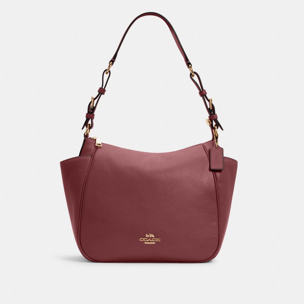 Refined pebble leather| Inside zip, cell phone and multifunction pockets| Zip-top closure, fabric lining| Adjustable handle with 11" drop| Outside zip pocket| 11 1/2" (L) x 9 1/2" (H) x 4 3/4" (W)