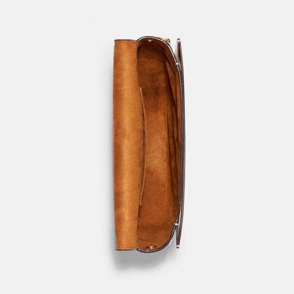 Smooth leather| Inside multifunction pocket| Magnetic snap closure, fabric lining| Outside open pocket| Detachable strap with 22" drop for shoulder or crossbody wear| 8 1/4" (L) x 6" (H) x 2 1/4" (W)