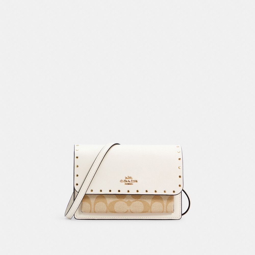 FOLDOVER BELT BAG IN SIGNATURE CANVAS WITH RIVETS