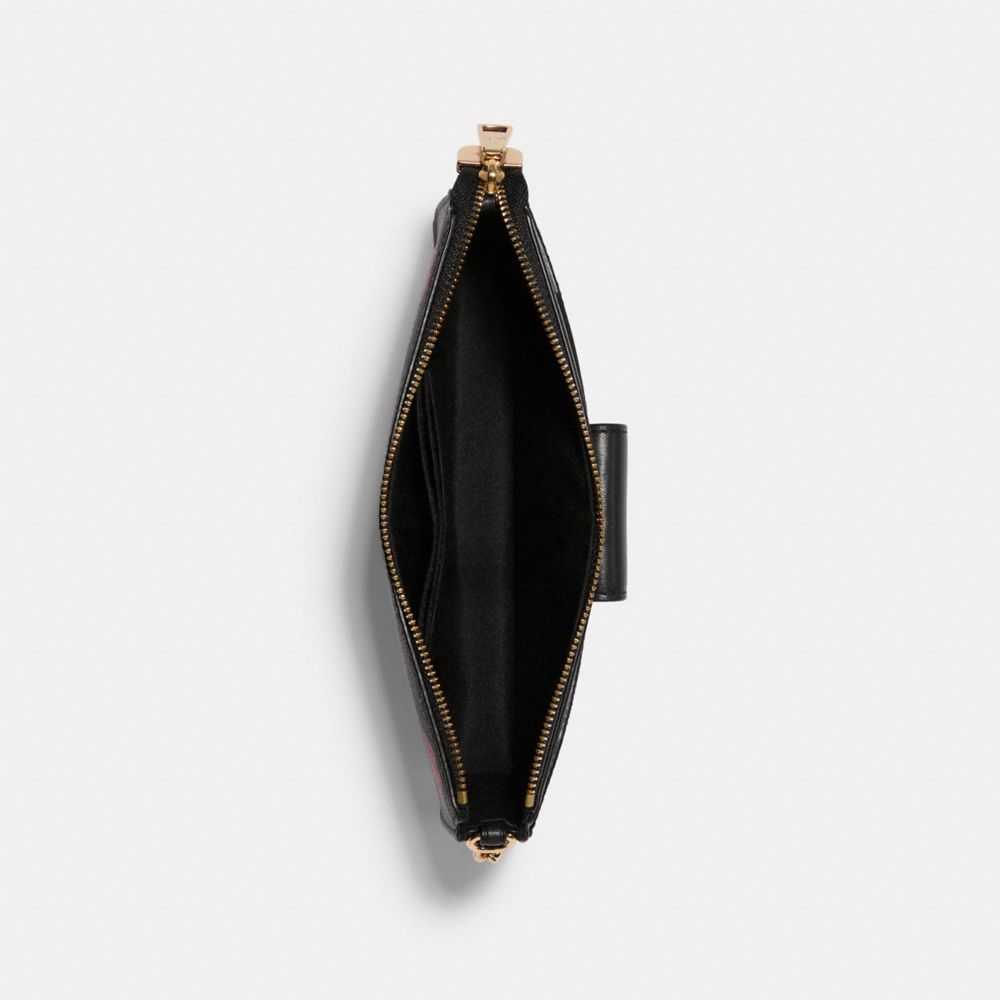 Printed coated canvas and smooth leather| Crossbody pouch:| Two credit card slots| Zip-top closure, fabric lining| Outside snap pocket| 8 1/4" (L) x 4 3/4" (H) x 1 1/4" (W)| Card case:| Inside multifunction pocket| Snap closure, fabric lining| Outside open pocket| 4" (L) x 3" (H) x 1" (W)| Detachable strap with 22" drop for shoulder or crossbody wear