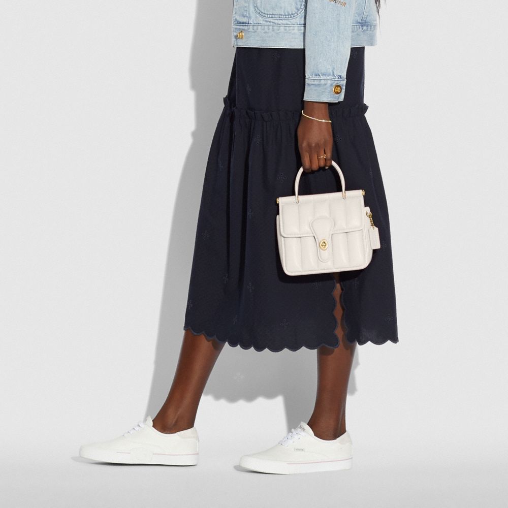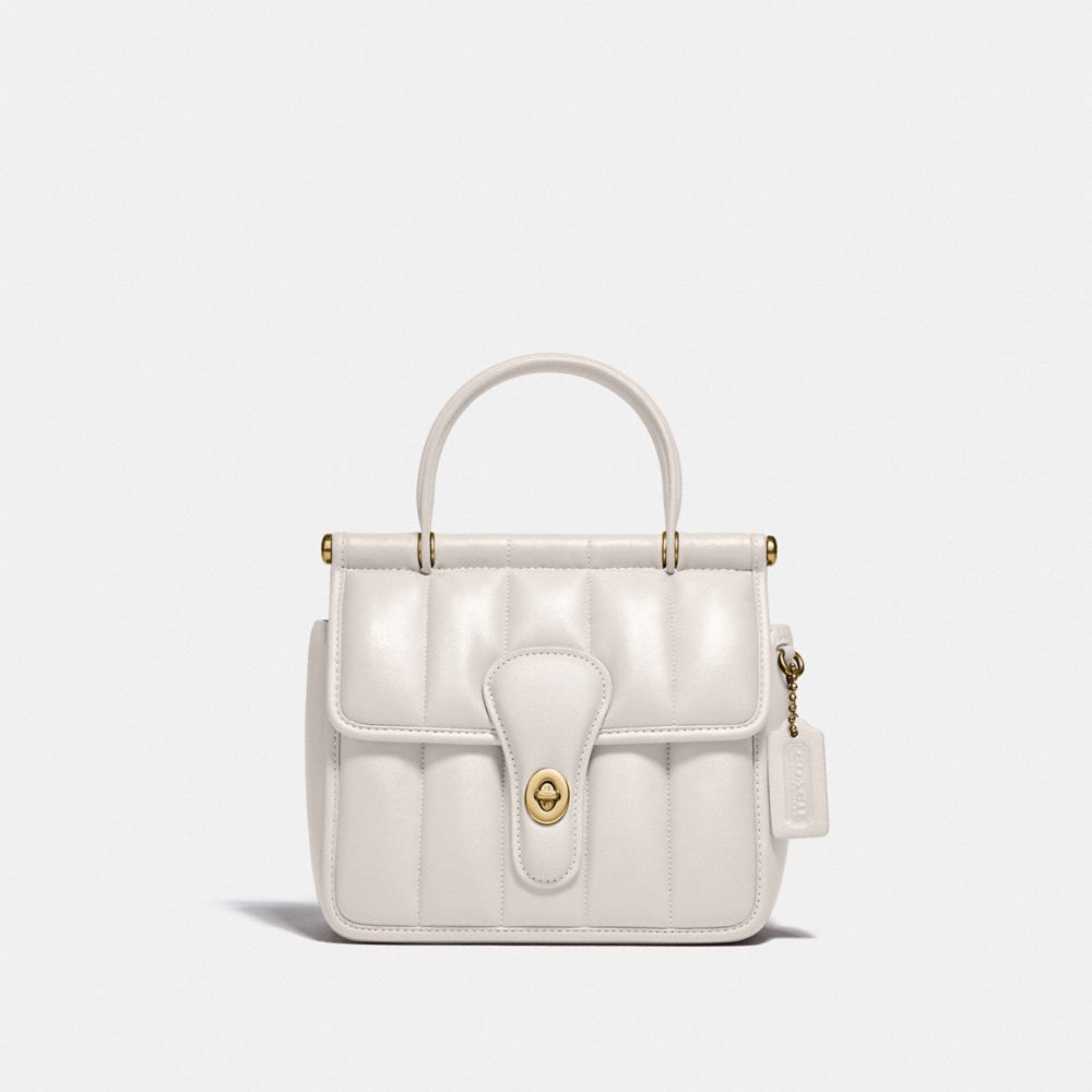 Nappa leather| One credit card slot| Inside zip and multifunction pockets| Turnlock closure, fabric lining| Top handle with 3" drop| Outside slip pocket| Detachable strap with 21 1/2" drop for shoulder or crossbody wear| 7" (L) x 6 1/2" (H) x 3 3/4" (W)| The Coach OriginalsStyle No. C3844