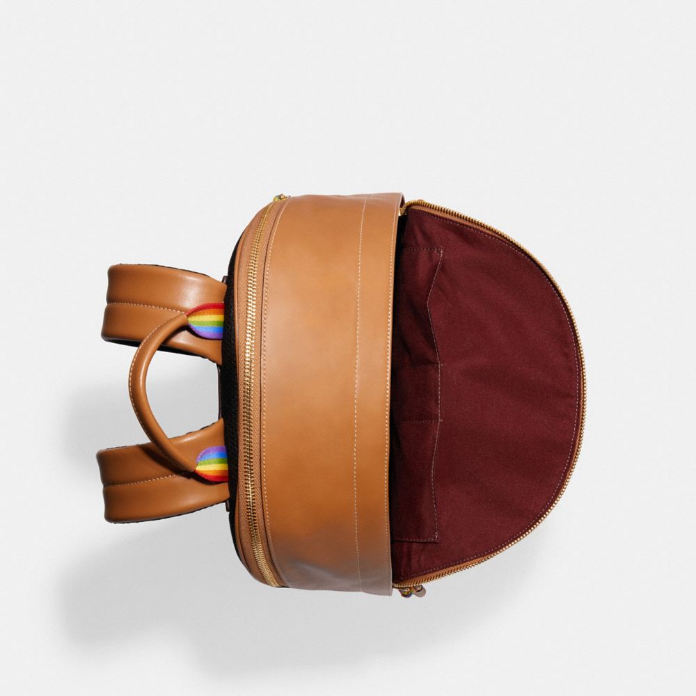 Signature coated canvas and refined calf leather| Two separate main compartments with zip closures| Inside zip, cell phone and multifunction pockets| Fabric lining| Top handle with 2 1/2" drop| Outside zip pocket| Adjustable shoulder straps| 12 1/2" (L) x 16 3/4" (H) x 6" (W)| Coach celebrates the LGBTQIA+ community this month and every month. This year the Coach Foundation has made donations to the Hetrick-Martin Institute (our longstanding partner), Albert Kennedy Trust, and new partners Point Foundation and CenterLink Community of LGBTQ Centers. All four organizations create supportive environments where LGBTQIA+ young people can find community. To learn more, visit coach.com/DreamItReal.