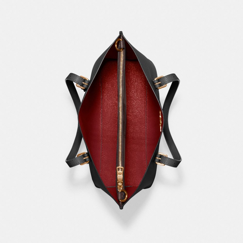 Double face crossgrain leather| Zip-top closure, fabric lining| Side open compartments| Handles with 4 3/4" drop| Detachable strap with 22" drop for shoulder or crossbody wear| 9 3/4" (L) x 7 1/2" (H) x 4 3/4" (W)