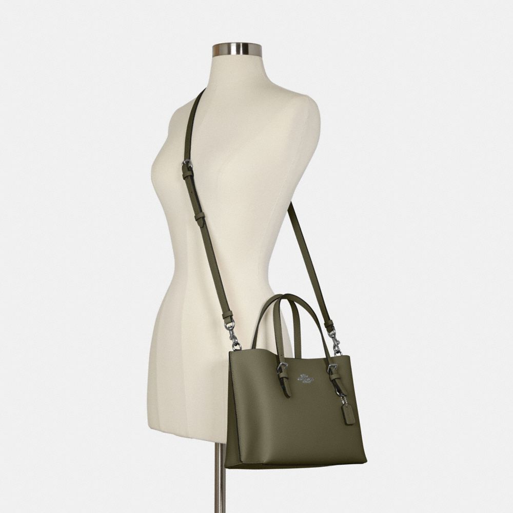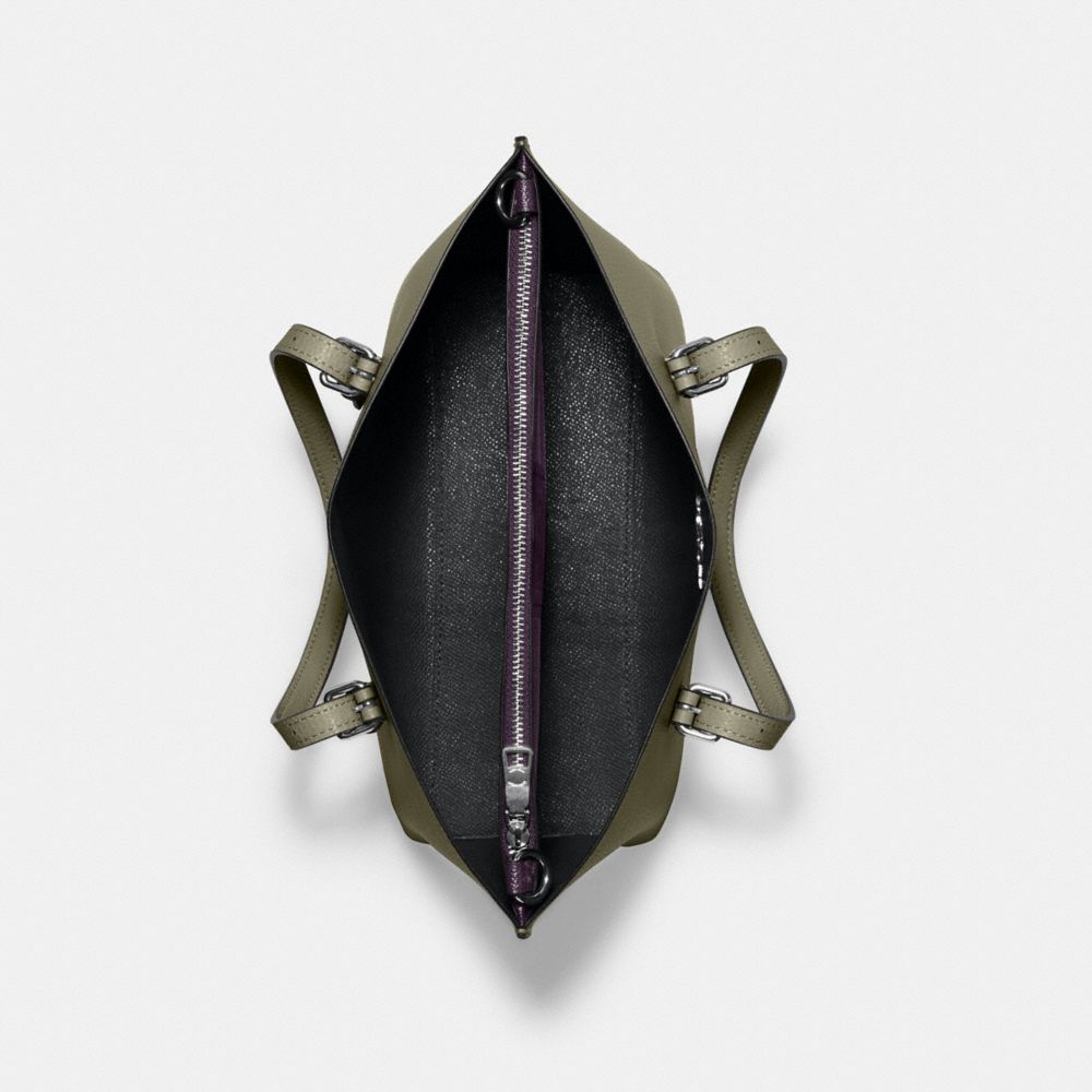 Double face crossgrain leather| Zip-top closure, fabric lining| Side open compartments| Handles with 4 3/4" drop| Detachable strap with 22" drop for shoulder or crossbody wear| 9 3/4" (L) x 7 1/2" (H) x 4 3/4" (W)