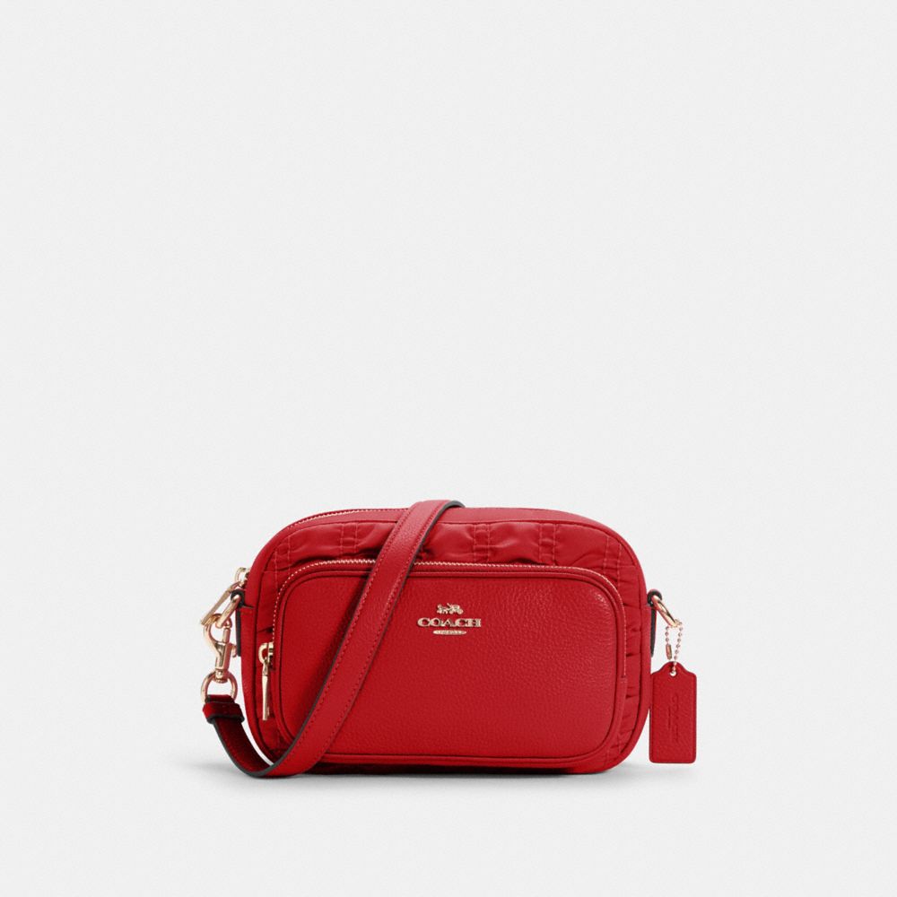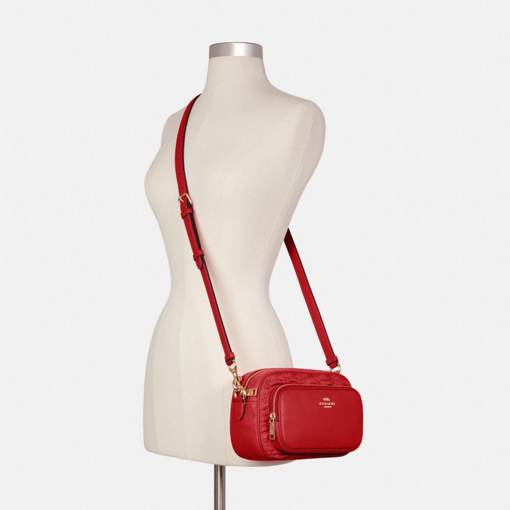 Nylon and refined pebble leather| Inside multifunction pocket| Zip closure, fabric lining| Outside zip pocket| Detachable strap with 22 1/2" drop for shoulder or crossbody wear| 9" (L) x 6" (H) x 2 3/4" (W)