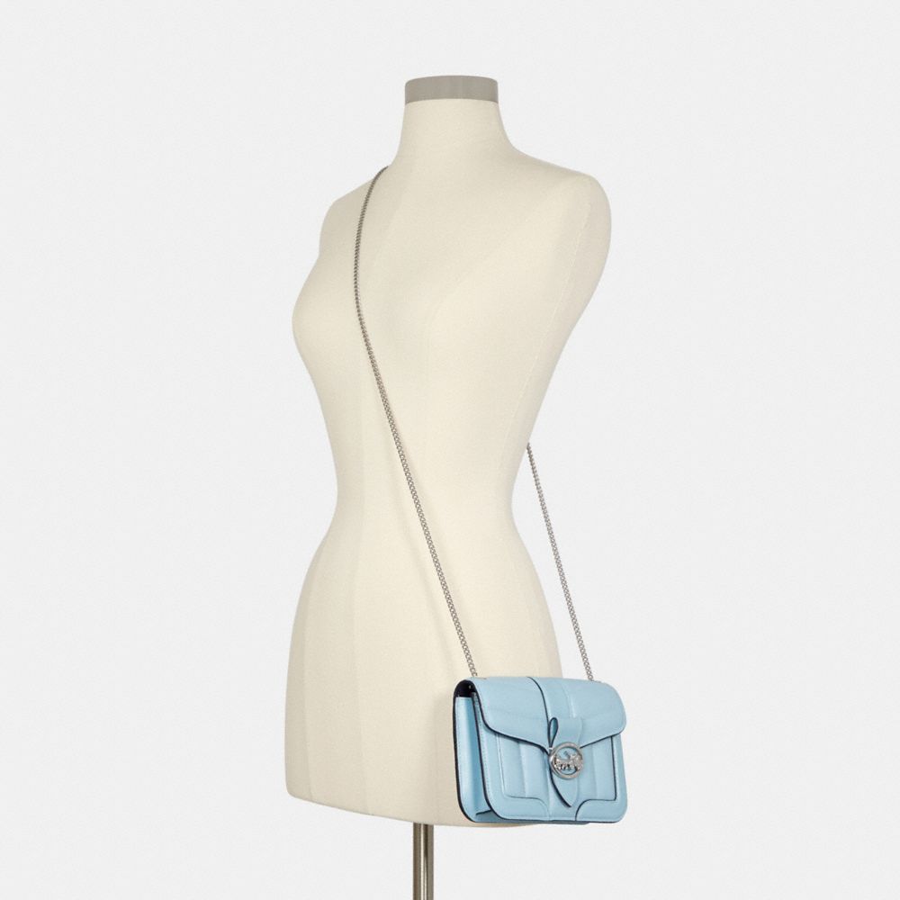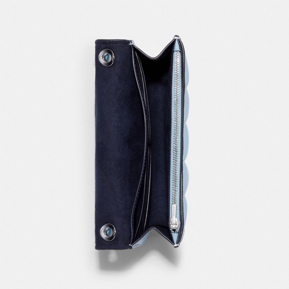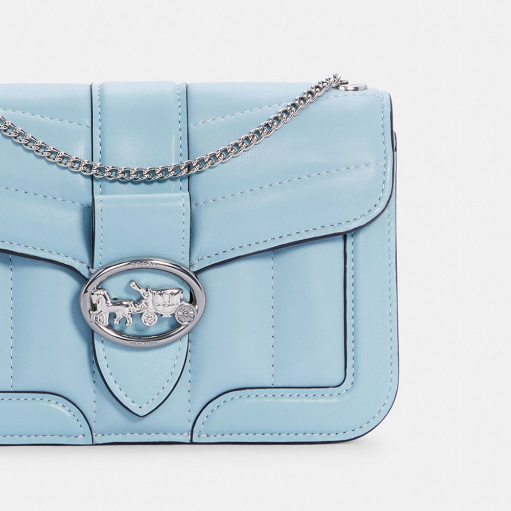 Nappa leather and smooth leather| Eight credit card slots| Full-length bill compartment| Inside zip and open pockets| Snap closure, fabric lining| Outside open pocket| Chain strap with 21 1/2" drop for shoulder or crossbody wear| 7 1/2" (L) x 5" (H) x 1 1/2" (W)