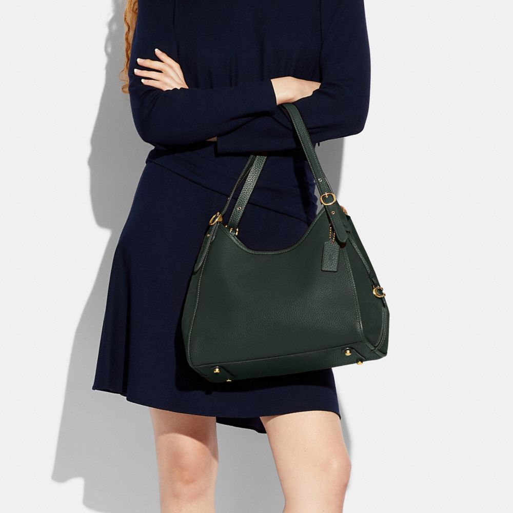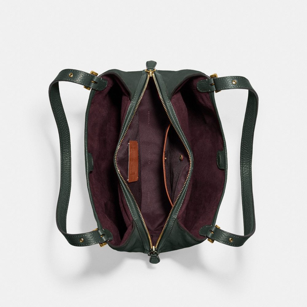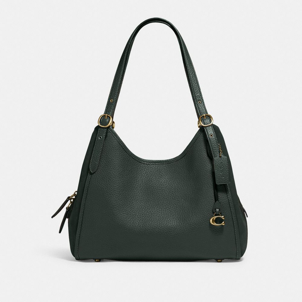 Soft pebble leather and suede| Inside snap pocket| Center zip compartment| Magnetic snap closure, fabric lining| Adjustable handles with 11" drop| Outside zip pocket| Four protective feet at base| 12 1/4" (L) x 10 1/4" (H) x 6" (W)Style No. C5265