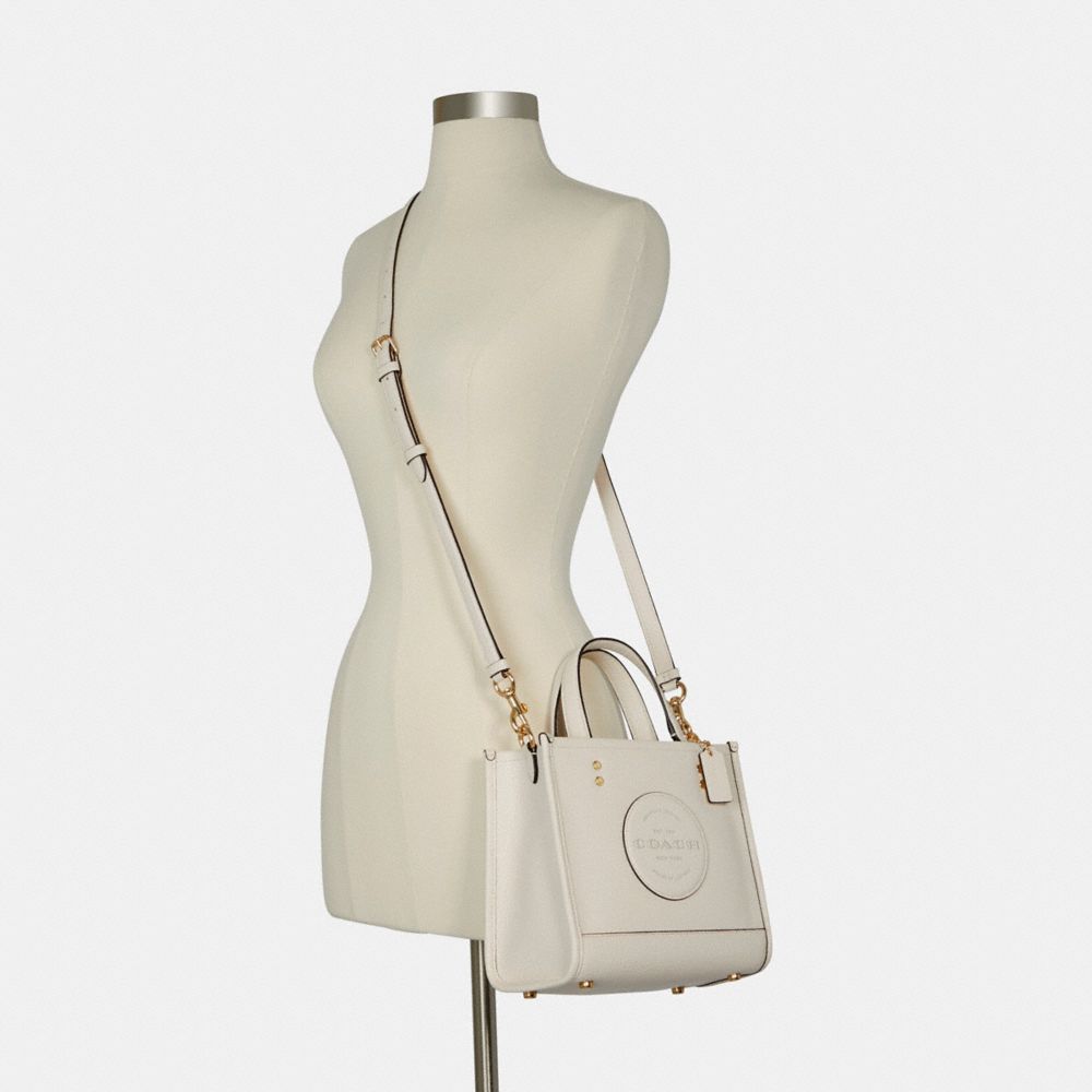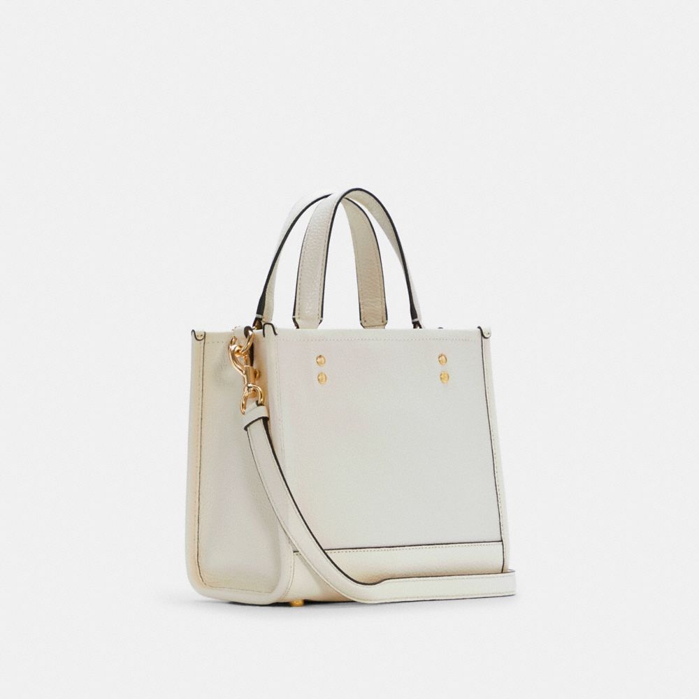 Refined pebble leather| Inside zip and multifunction pockets| Snap closure, fabric lining| Handles with 4 1/4" drop| Detachable strap with 22 1/2" drop for shoulder or crossbody wear| Four protective feet at base| 8 3/4" (L) x 7 3/4" (H) x 4 1/4" (W)Style No. C5268