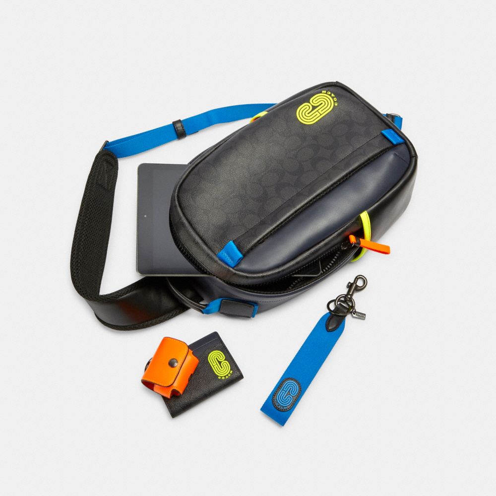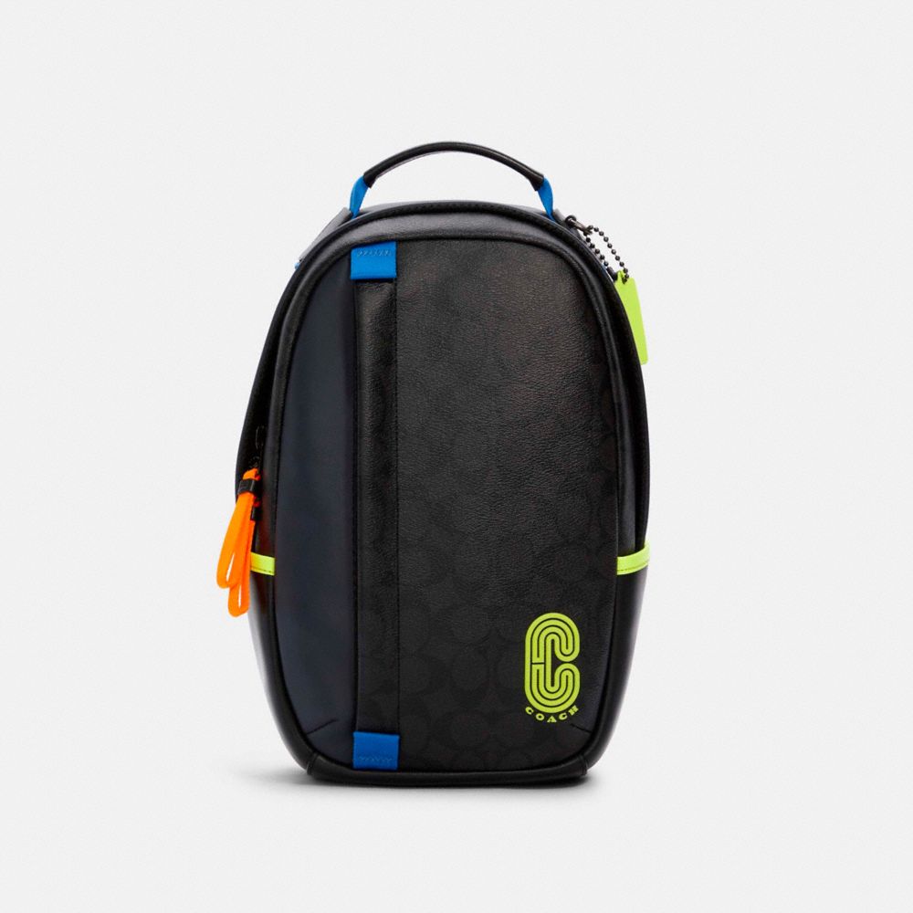 Signature coated canvas and refined calf leather| Inside multifunction pocket| Zip closure, fabric lining| Top handle with 1 1/4" drop| Outside zip and slip pockets| Outside zip access to interior| Adjustable strap for crossbody wear| 9" (L) x 13 3/4" (H) x 4 1/4" (W)