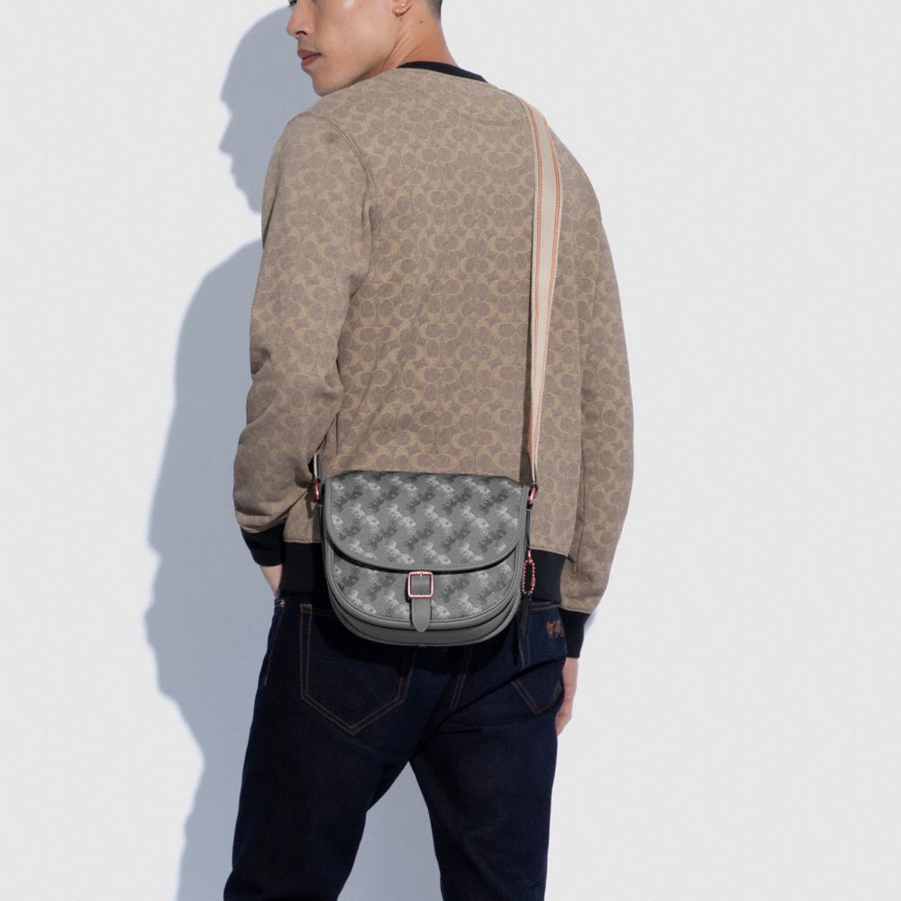 Printed coated canvas and polished pebble leather| One credit card slot| Inside multifunction pocket| Snap closure, fabric lining| Outside snap pocket| Adjustable strap with 23" drop for shoulder or crossbody wear| 9 1/2" (L) x 8 1/4" (H) x 3" (W)Style No. C5383
