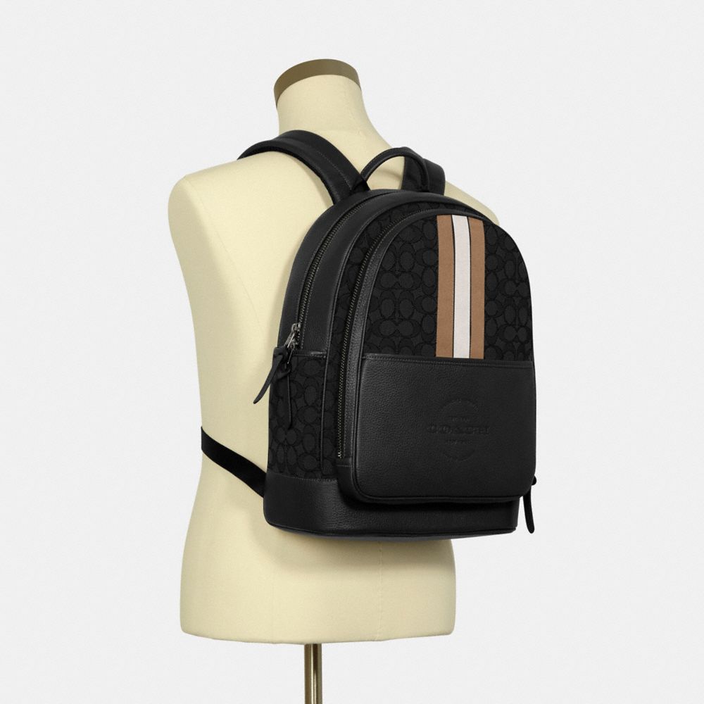THOMPSON BACKPACK IN SIGNATURE JACQUARD WITH VARSITY STRIPE