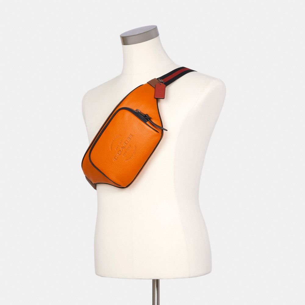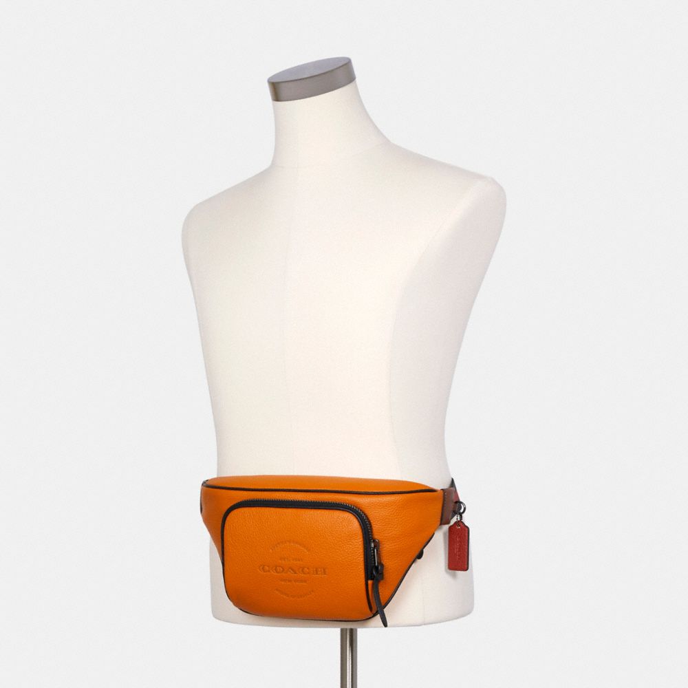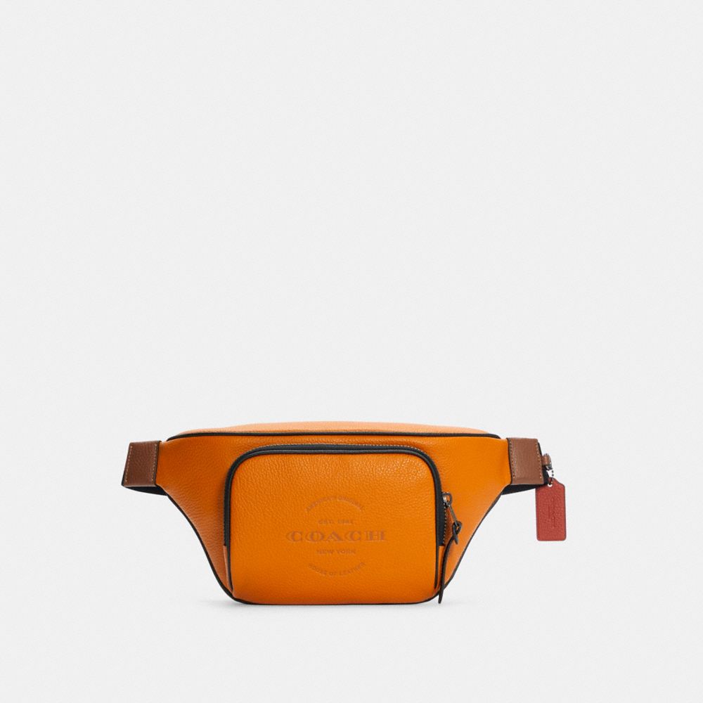 Refined pebble leather| Inside multifunction pocket| Zip closure, fabric lining| Outside zip pocket| Adjustable strap for wear at waist| 12 3/4" (L) x 6 1/4" (H)