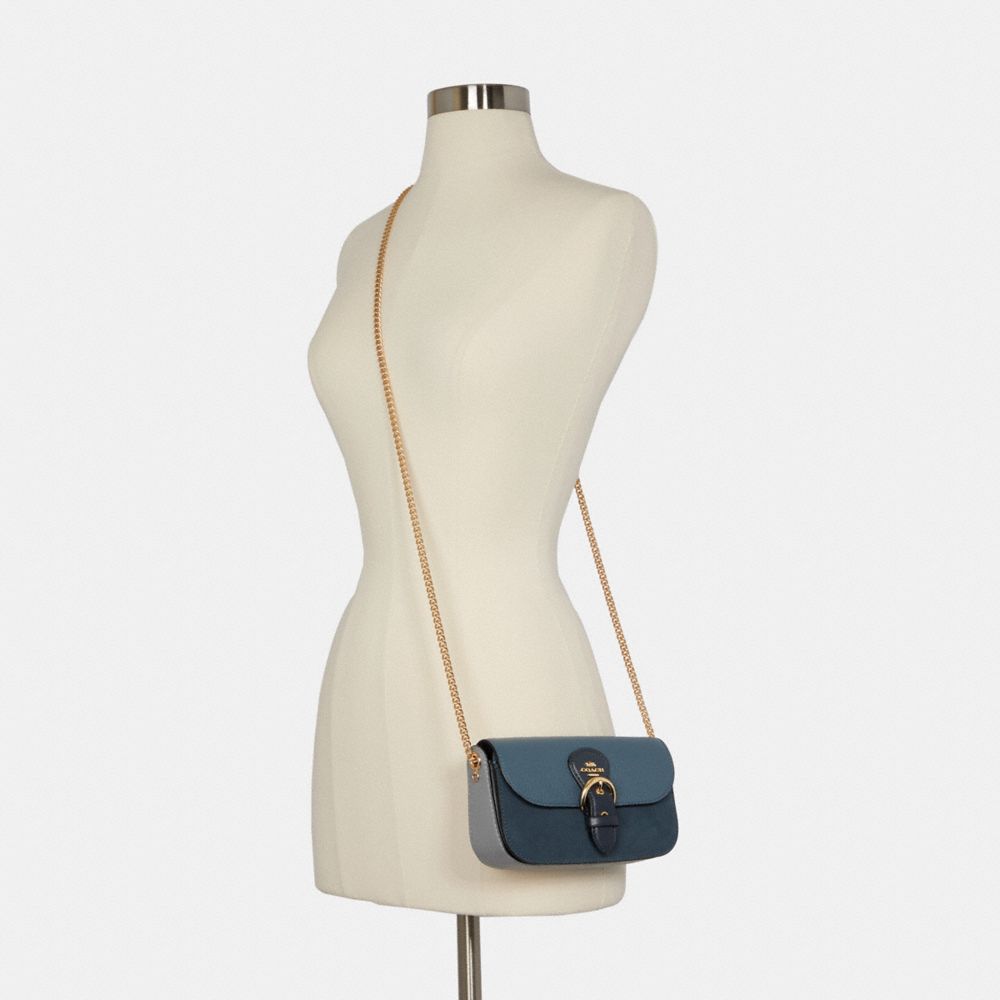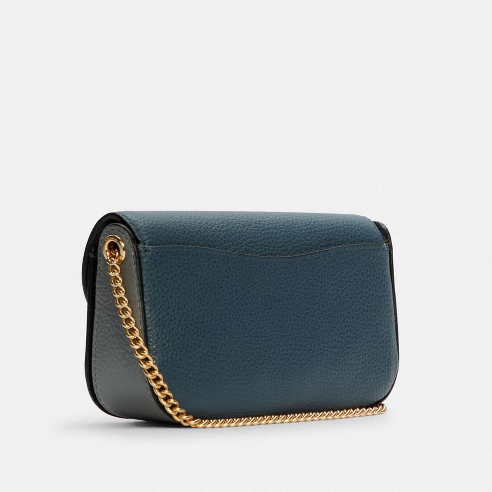 Refined pebble leather, smooth leather and suede| Two credit card slots| Inside multifunction pocket| Snap closure, fabric lining| Outside open pocket| Detachable wrist strap| Detachable chain strap with 23" drop for shoulder or crossbody wear| 7 1/2" (L) x 4 1/2" (H) x 1 3/4" (W)