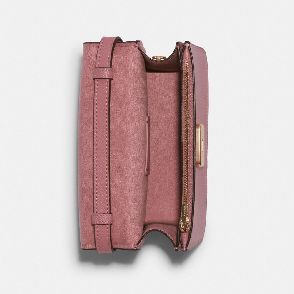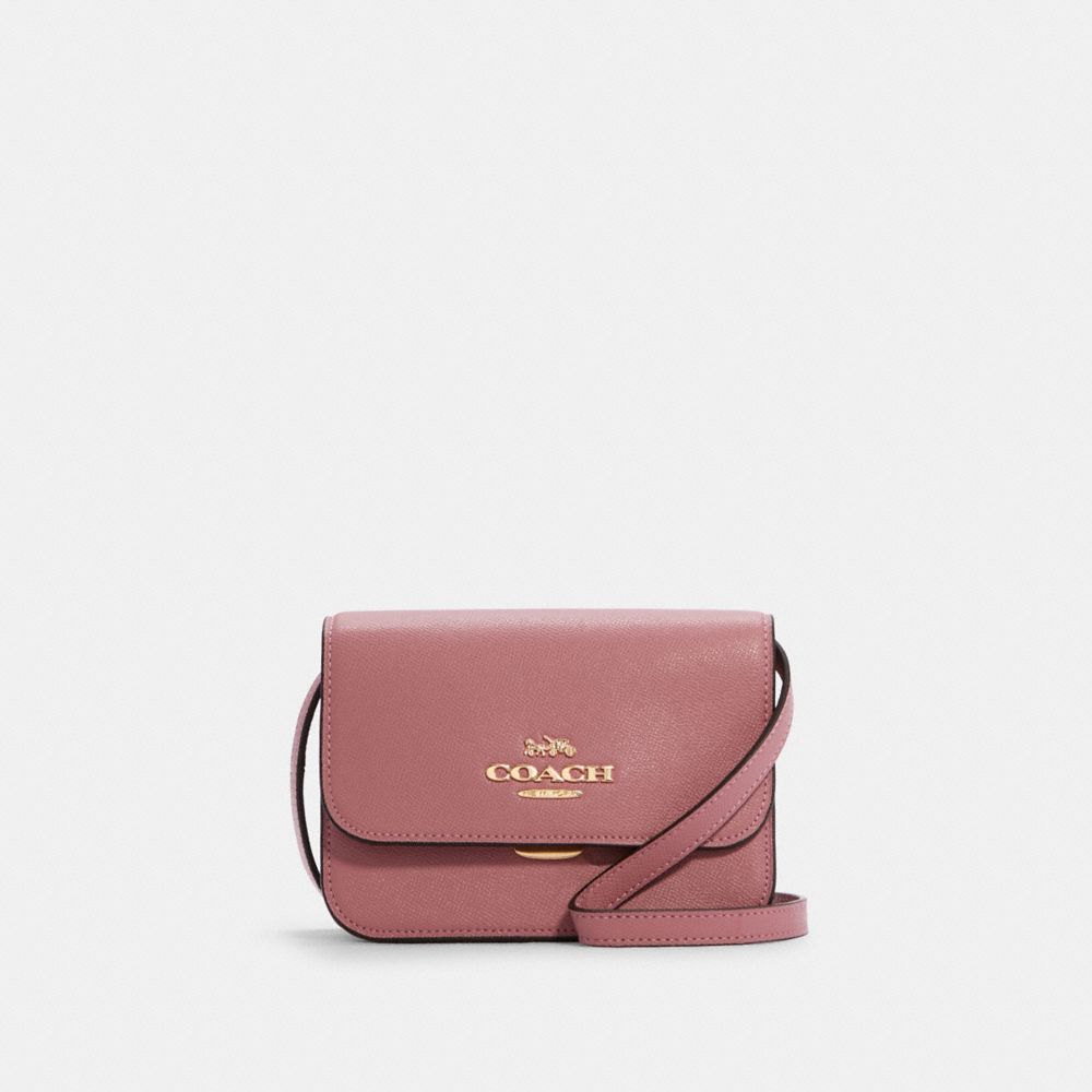 Crossgrain leather| Two credit card slots| Inside zip pocket| Pushlock closure, fabric lining| Outside open pocket| Detachable strap with 21 1/2" drop for shoulder or crossbody wear| 7 1/4" (L) x 5 1/4" (H) x 2 3/4" (W)Style No. C5626