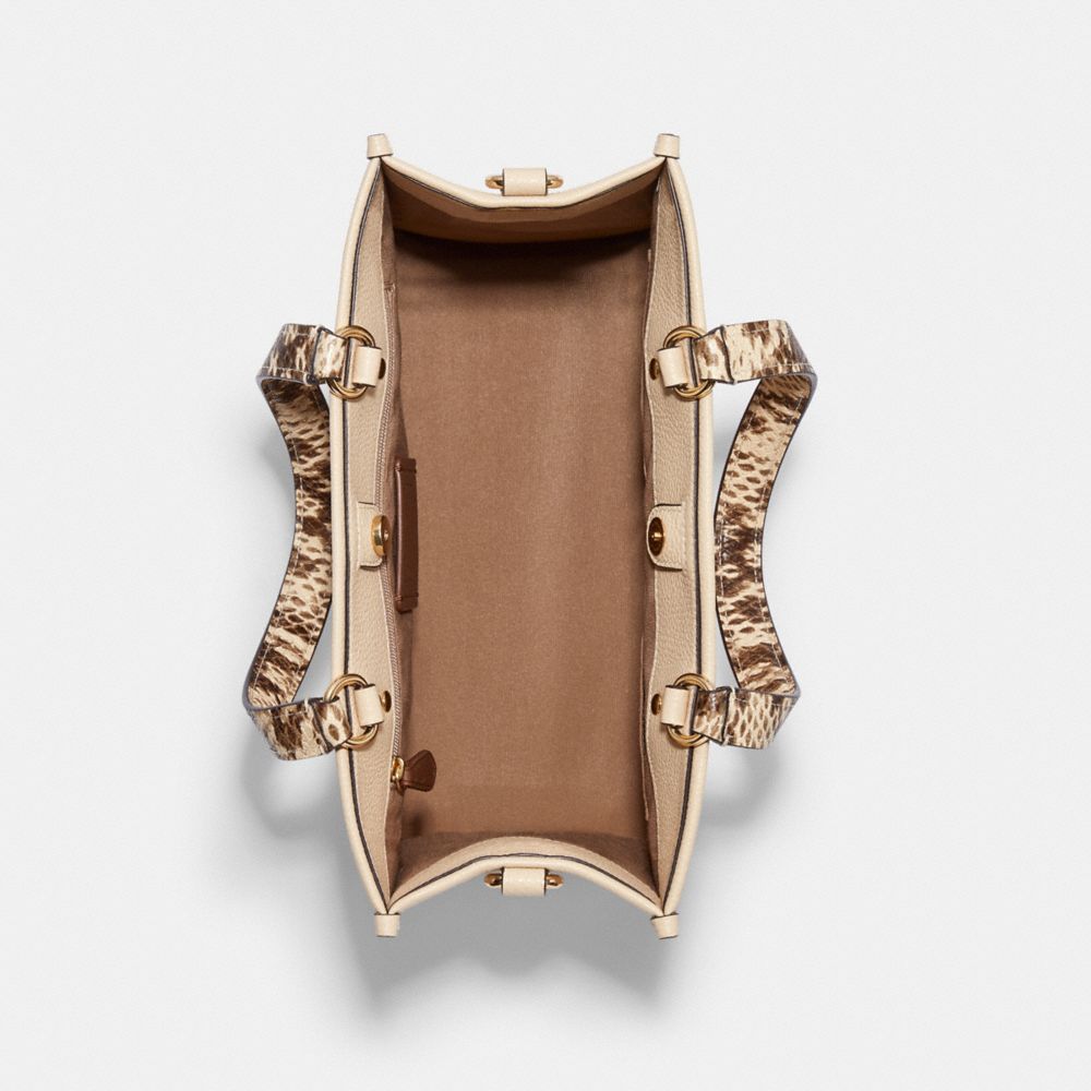 Refined pebble leather and snake-embossed leather| Inside zip, cell phone and multifunction pockets| Snap closure, fabric lining| Handles with 5 1/4" drop| Detachable strap with 20" drop for shoulder or crossbody wear| 11 1/2" (L) x 8 3/4" (H) x 5" (W)| Coach celebrates and honors renowned New York City artist Jean-Michel Basquiat with a special collection featuring elements from his revolutionary works of art.| © ESTATE OF JEAN-MICHEL BASQUIAT. LICENSED BY ARTESTAR, NEW YORK