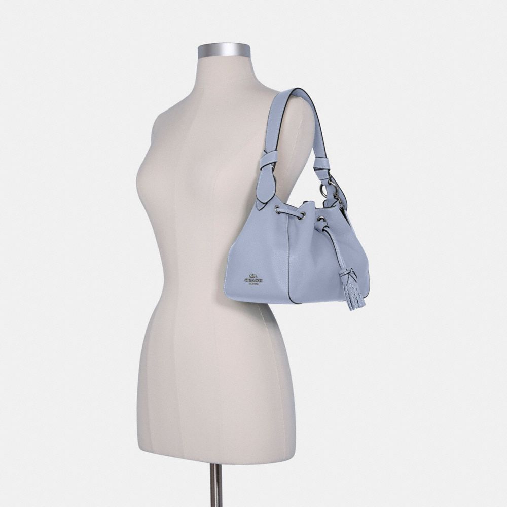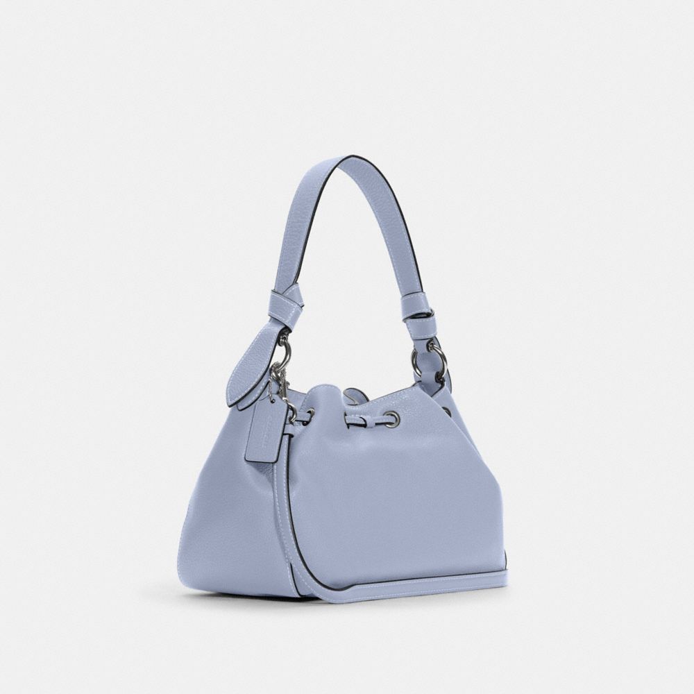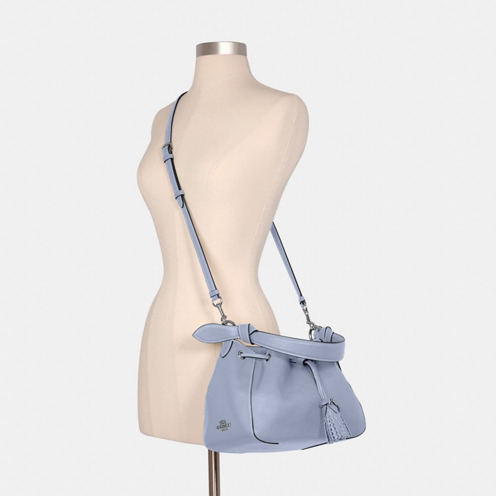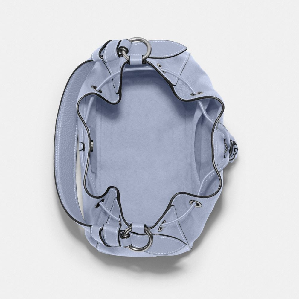 Refined pebble leather| Inside zip and multifunction pockets| Drawstring and snap closures, fabric lining| Handle with 8 1/2" drop| Detachable strap with 22 1/2" drop for shoulder or crossbody wear| 10 3/4" (L) x 6 1/2" (H) x 5" (W)Style No. C5671