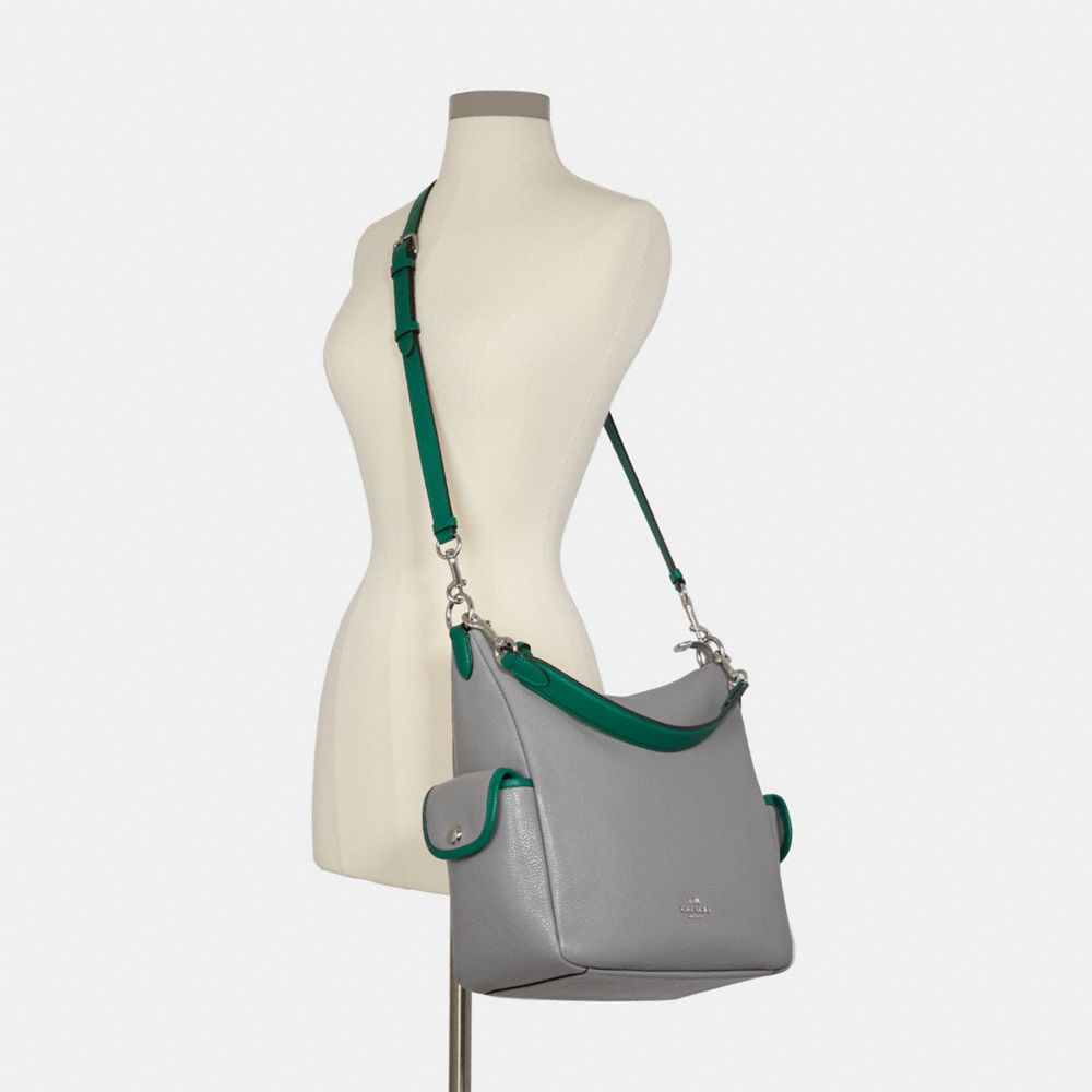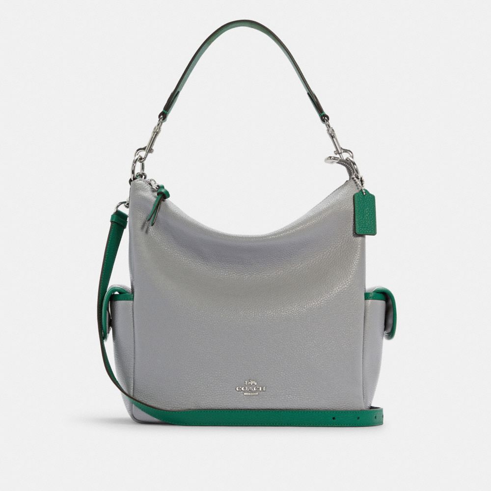 Refined pebble leather| Inside zip pocket| Zip-top closure, fabric lining| Detachable handle with 7" drop| Outside zip and snap pockets| Detachable strap with 20 3/4" drop for shoulder or crossbody wear| 10 3/4" (L) x 11 3/4" (H) x 5 1/4" (W)Style No. C5673