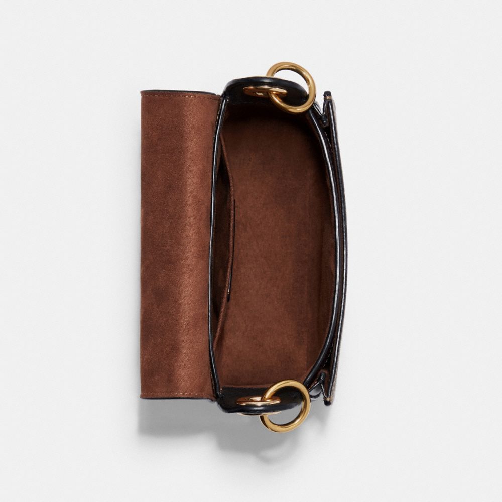 Signature coated canvas, buffalo-embossed leather, smooth leather and suede| Inside multifunction pockets| Snap closure, fabric lining| Detachable handle with 7 1/2" drop| Detachable strap with 21 3/4" drop for shoulder or crossbody wear| 6 3/4" (L) x 6" (H) x 2 1/2" (W)