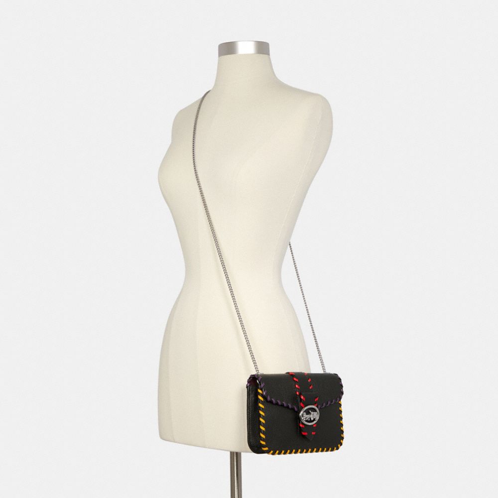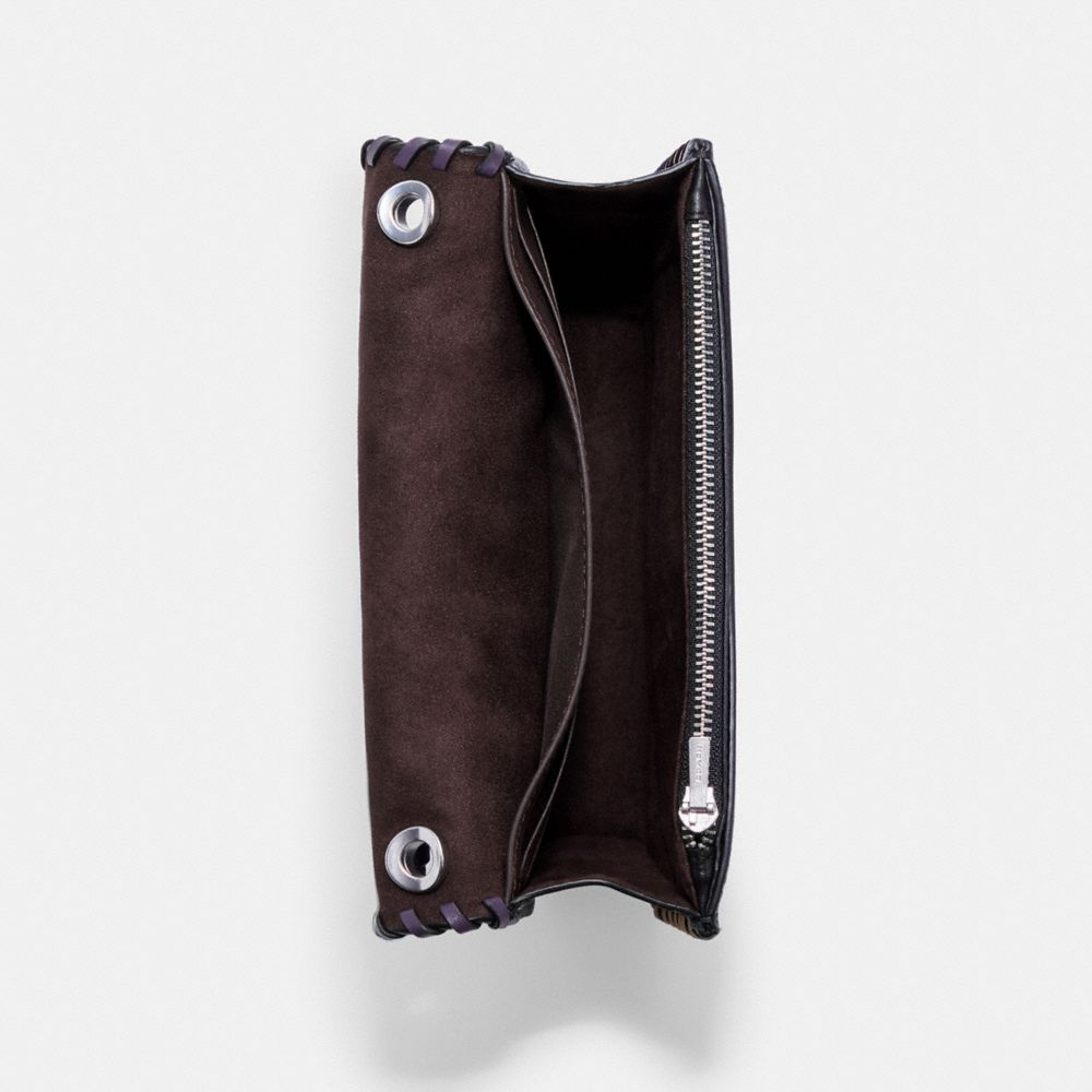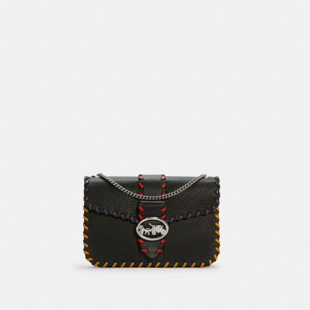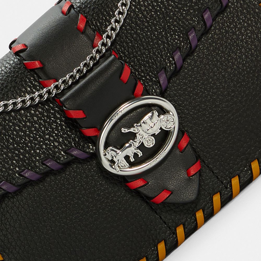 Refined pebble leather and smooth leather| Eight credit card slots| Full-length bill compartment| Inside zip and open pockets| Snap closure, fabric lining| Outside open pocket| Chain strap with 21 1/2" drop for shoulder or crossbody wear| 7 1/2" (L) x 5" (H) x 1 1/2" (W)Style No. C6004