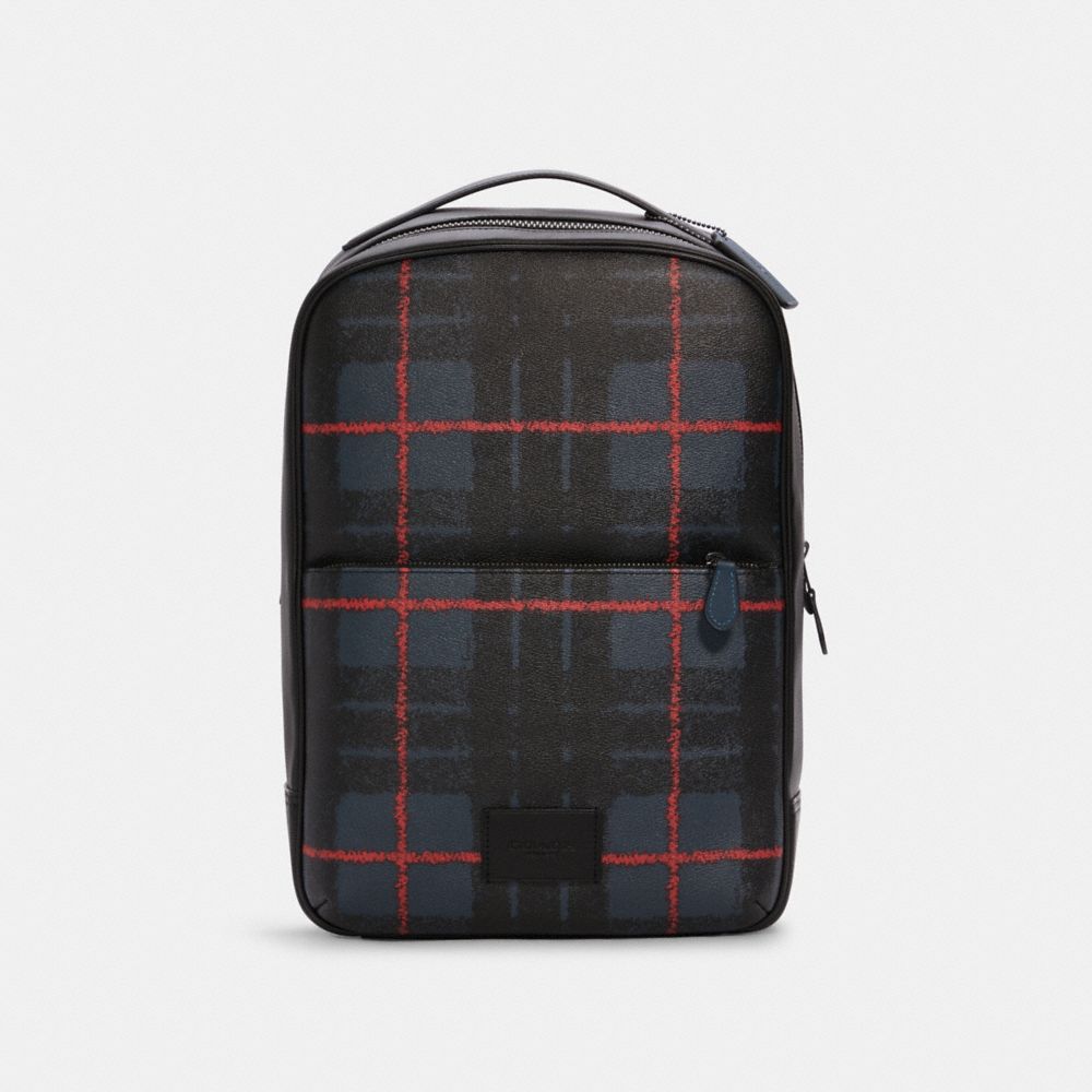 Printed coated canvas and smooth calf leather| Inside multifunction pocket| Zip closure, fabric lining| Top handle with 3/4" drop| Outside zip pocket| Adjustable shoulder straps| 10 1/2" (L) x 15 1/2" (H) x 4 1/4" (W)Style No. C6690