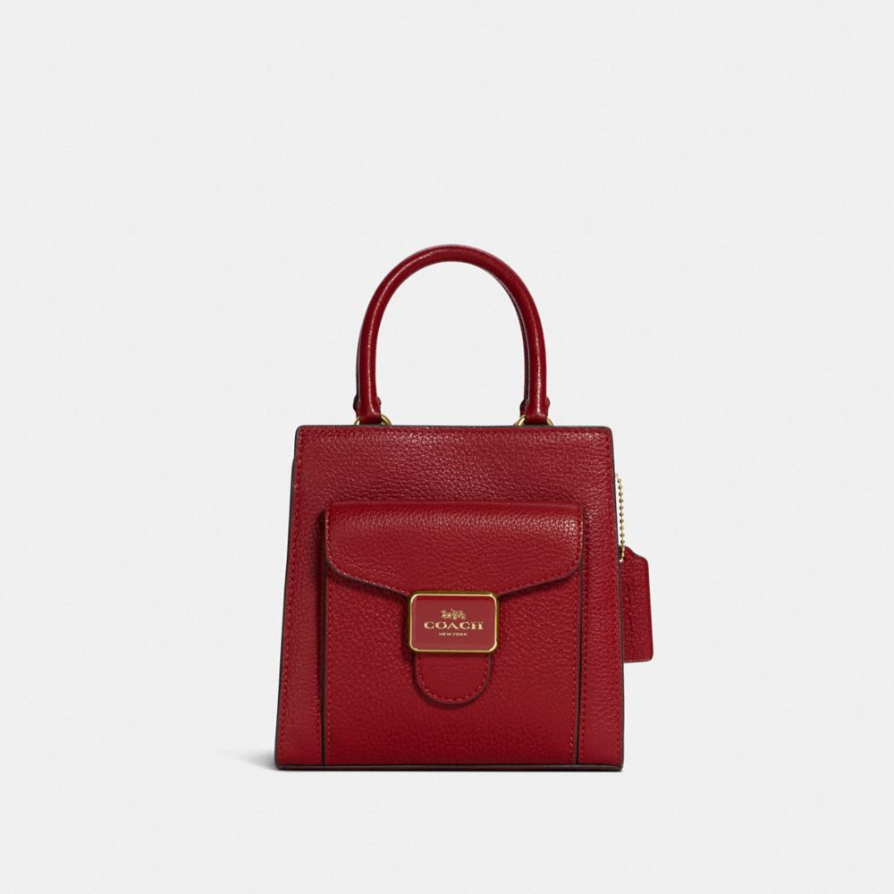 Refined pebble leather| Two credit card slots| Inside multifunction pocket| Magnetic snap closure, fabric lining| Handles with 3 3/4" drop| Outside flap pocket| Detachable strap with 23 1/2" drop for shoulder or crossbody wear| 6 3/4" (L) x 6 3/4" (H) x 3" (W)Style No. C6778
