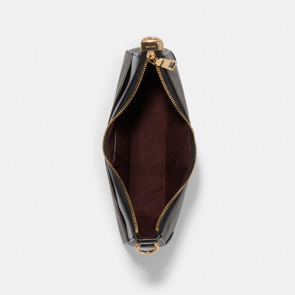 Signature coated canvas and smooth leather| Inside zip pocket| Zip-top closure, fabric lining| Detachable handle with 11" drop| Outside open pocket| Detachable strap with 21 1/2" drop for shoulder or crossbody wear| 11" (L) x 9 3/4" (H) x 2 1/2" (W)Style No. C6851